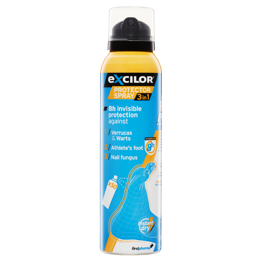 Excilor 3-in-1 Protector Spray is the first and only protector spray against warts, athlete's foot and nail fungus. Always read the label. Follow the directions for use. If symptoms persist, talk to your health professional.