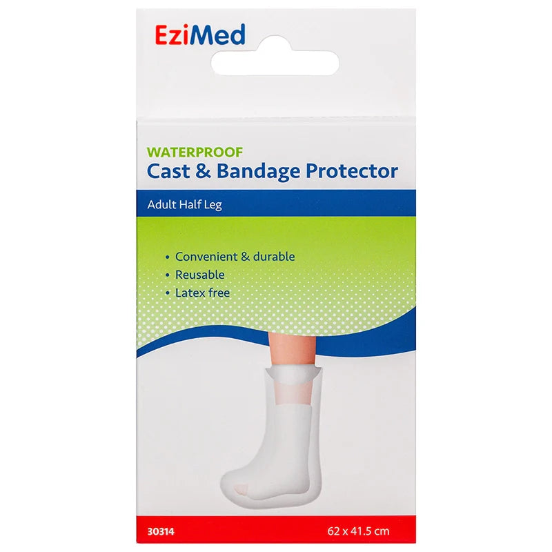 Protect your cast or bandage with the EziMed Waterproof Half Leg Cast & Bandage Protector. This high-quality, reusable protector is designed to keep your cast or bandage dry and clean during showers, baths, or any wet conditions. Made from durable silicone, it ensures a secure and comfortable fit without the need for latex, making it safe for those with allergies. Measuring 62 x 41.5cm, it accommodates various leg sizes, providing a reliable barrier against water. Choose EziMed for a convenient, long-lasting solution to protect your cast or bandage. Ideal for everyday use, this protector is an essential accessory for anyone recovering from a leg injury. Key Features: Convenient and durable design Reusable and latex-free Made from high-quality silicone Size: 62 x 41.5cm Ensure your recovery is hassle-free with the EziMed Waterproof Half Leg Cast & Bandage Protector. Perfect for maintaining hygiene and comfort throughout your healing process.