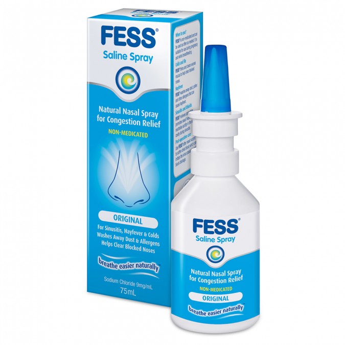 FESS Saline Spray Original Nasal Spray is a non-medicated saline nasal spray for the relief of nasal congestion due to sinusitis, hayfever and colds.