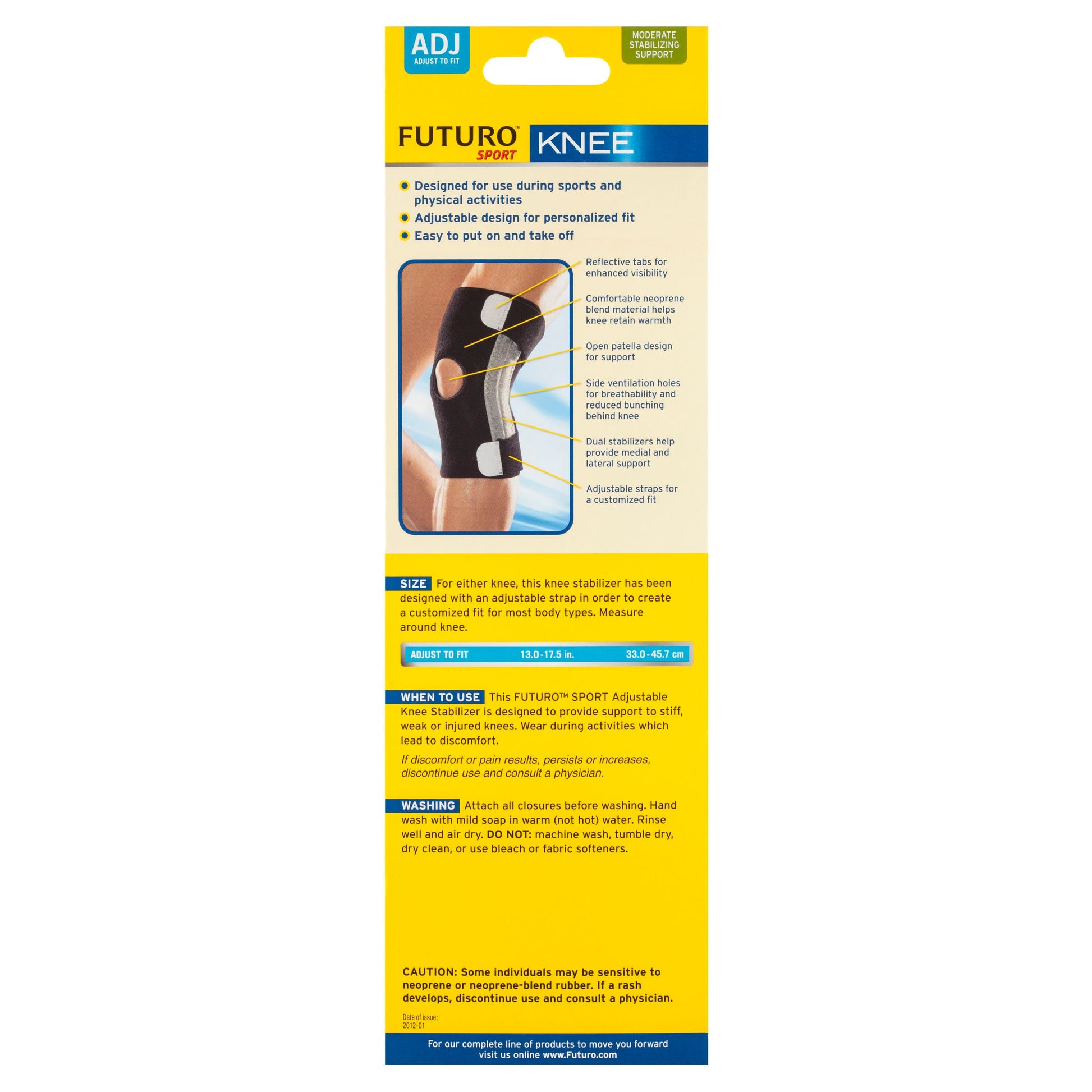 Get a leg up on the competition. Put on the FUTURO™ Sport Adjustable Knee Stabilizer and gain the extra support needed to help stabilize your knee, so you stay in top form. So strap on this reinforcing knee brace and get back in the game.