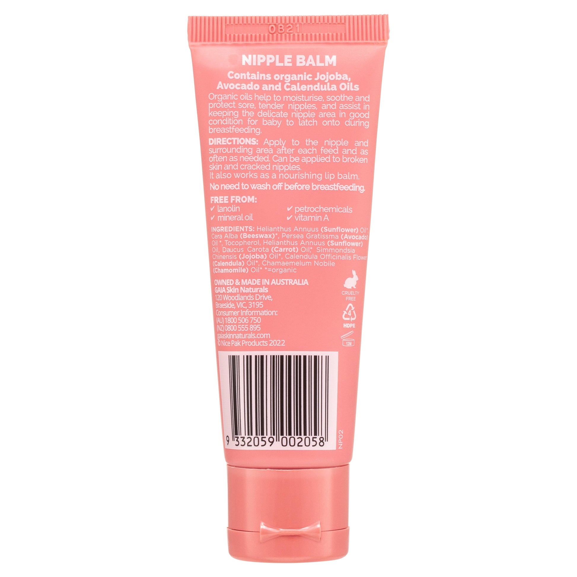 Gaia Skin + Body Nipple Balm is lanolin-free and enriched with pure, natural, organic carrot seed and avocado oils to help soothe and protect the delicate nipple area.