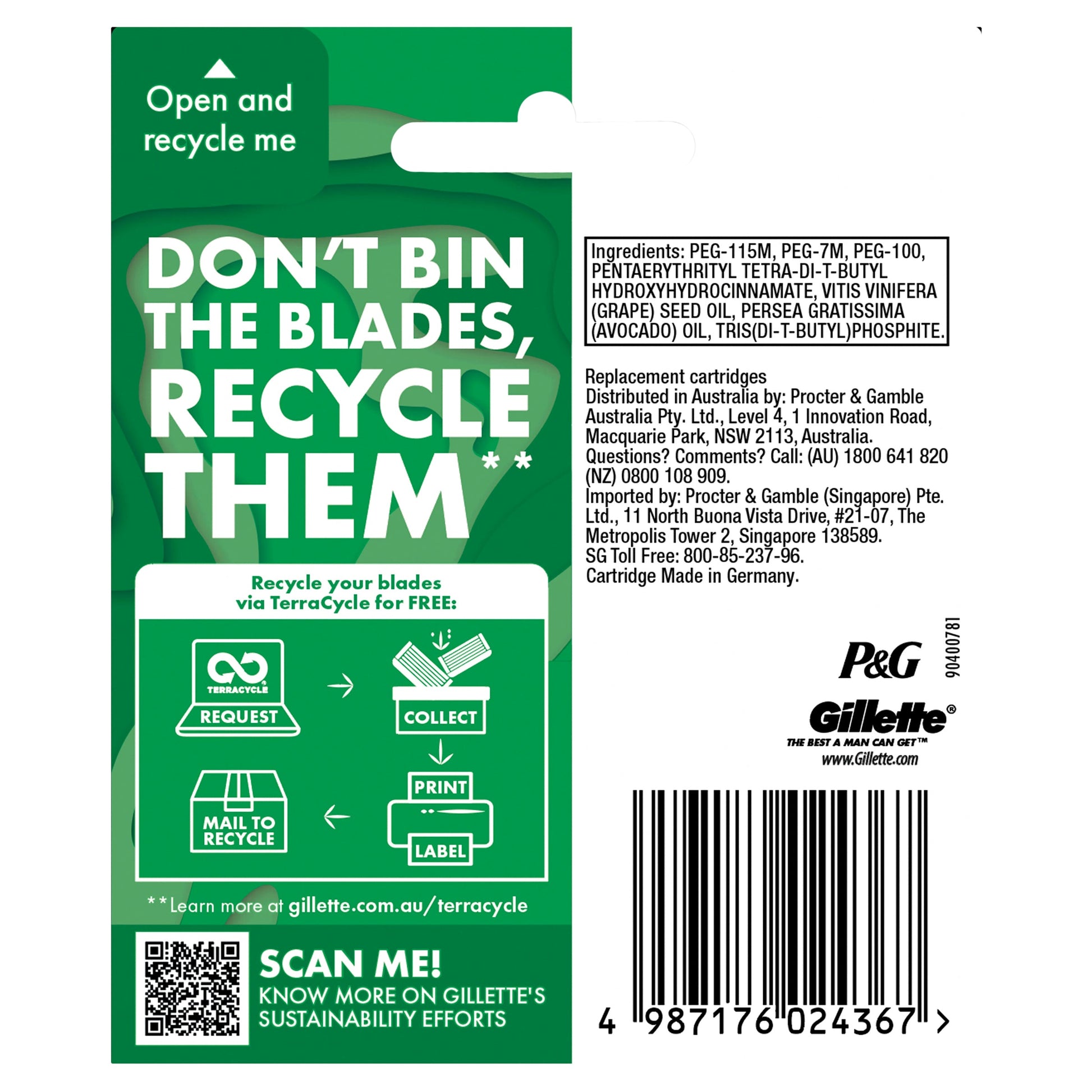 • Optimally spaced Gillette blades to reduce tug and pull• Lubrication before and after the blades