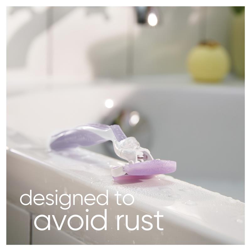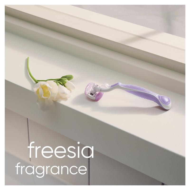 Gillette Venus ComfortGlide Freesia women's razors feature 3 curve-hugging blades for a smooth, close shave that lasts. From handles designed for a comfortable grip to pivoting heads that contour to curves, The razor blade refills come equipped with built-in flexible gel bars that, when wet, release rich Freesia scented body butter lather for glide and comfort. No need for shave gel. Venus ComfortGlide women's razors feature an adaptive, pivoting design that adjusts to your body's contours and a rounded head that hugs curves and fits easily into hard-to-shave areas. No awkwardly angling your razor. This razor's handle is also made with up to 30% recycled plastic. Any Venus blade refill fits any Venus razor handle (except Simply Venus and Venus Pubic Hair Razor).