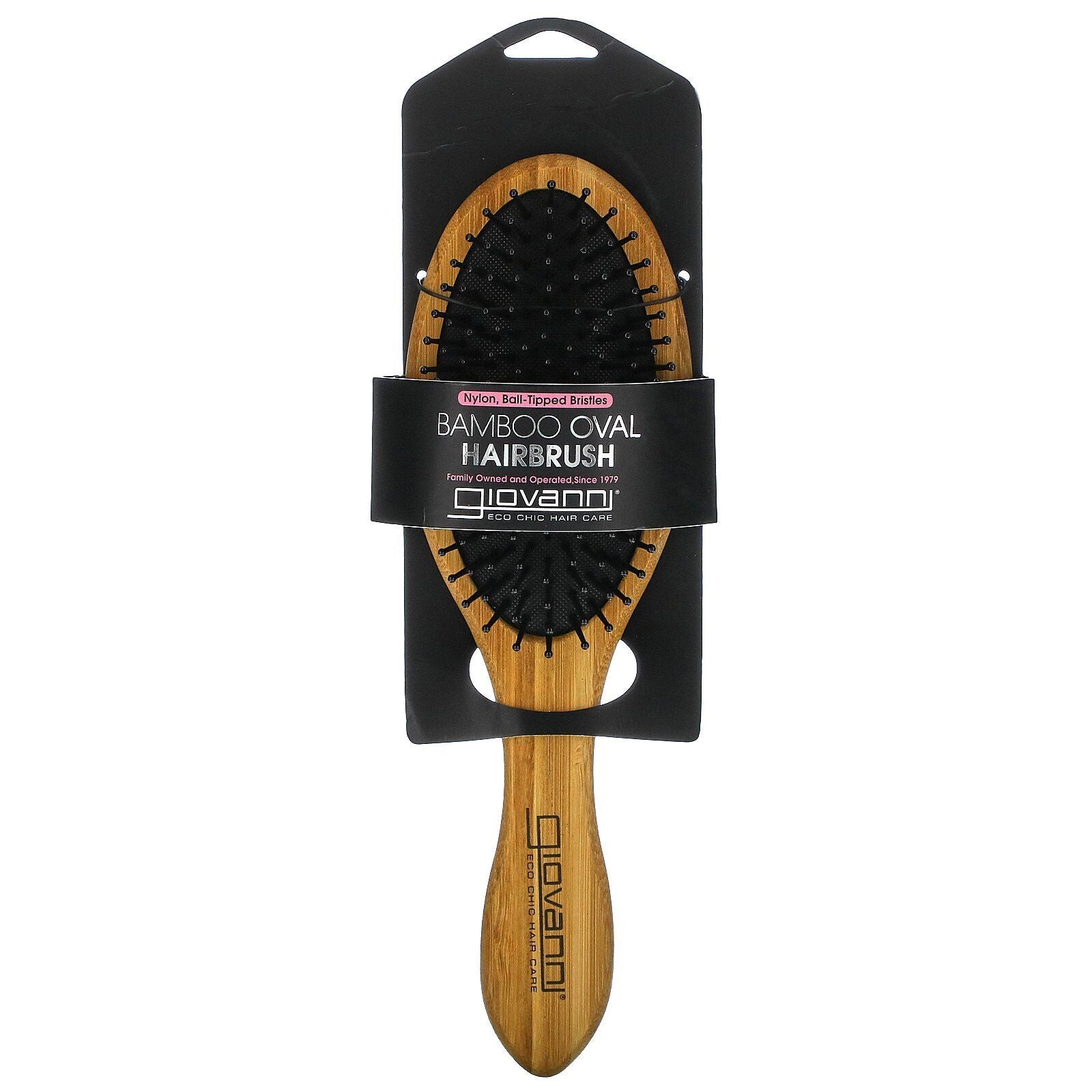 GIOVANNI Bamboo Hairbrush Oval - Nylon, Ball-Tipped Bristles - 1