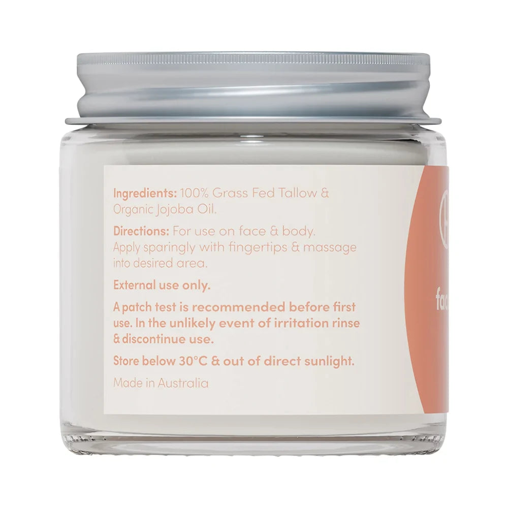 100% Grass Fed Tallow, Certified Organic Jojoba Oil.
