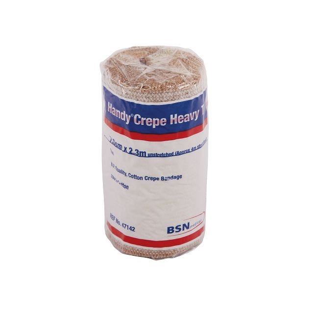 Handy Crepe Heavy is a tan coloured strong support crepe bandage.
