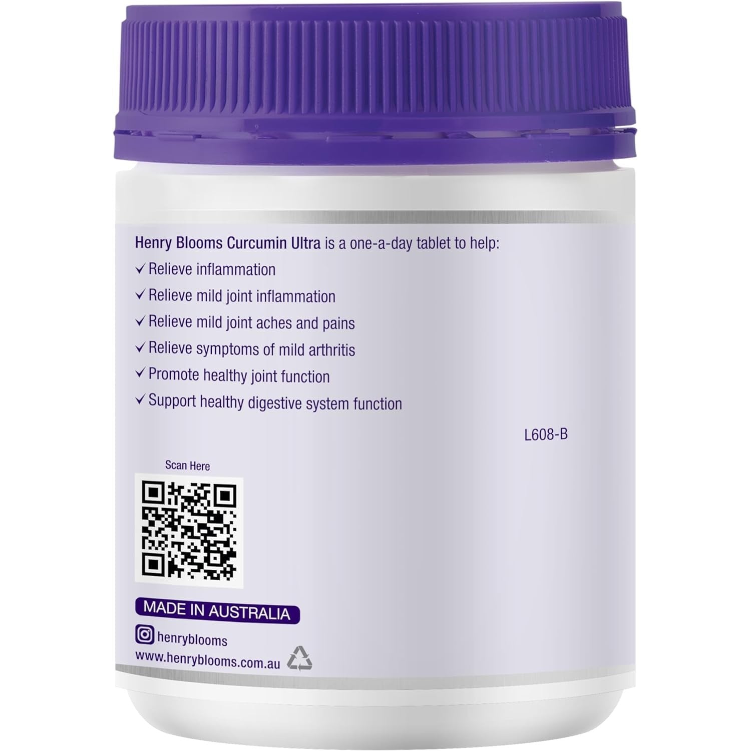 Henry Blooms Curcumin Ultra provides a high potency tablet containing 1300 mg active curcuminoids. Combined with BioP™ (black pepper) to increase and enhance absorption, this one-a-day formula supports joint, digestive and liver health plus overall wellbeing and vitality.