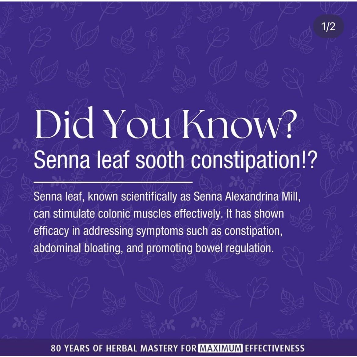 - Senna is a herb used in the relief of constipation, which works through a stimulation of ‘peristalsis’, the rhythmic muscular contraction of the colon which pushes food through the gut.