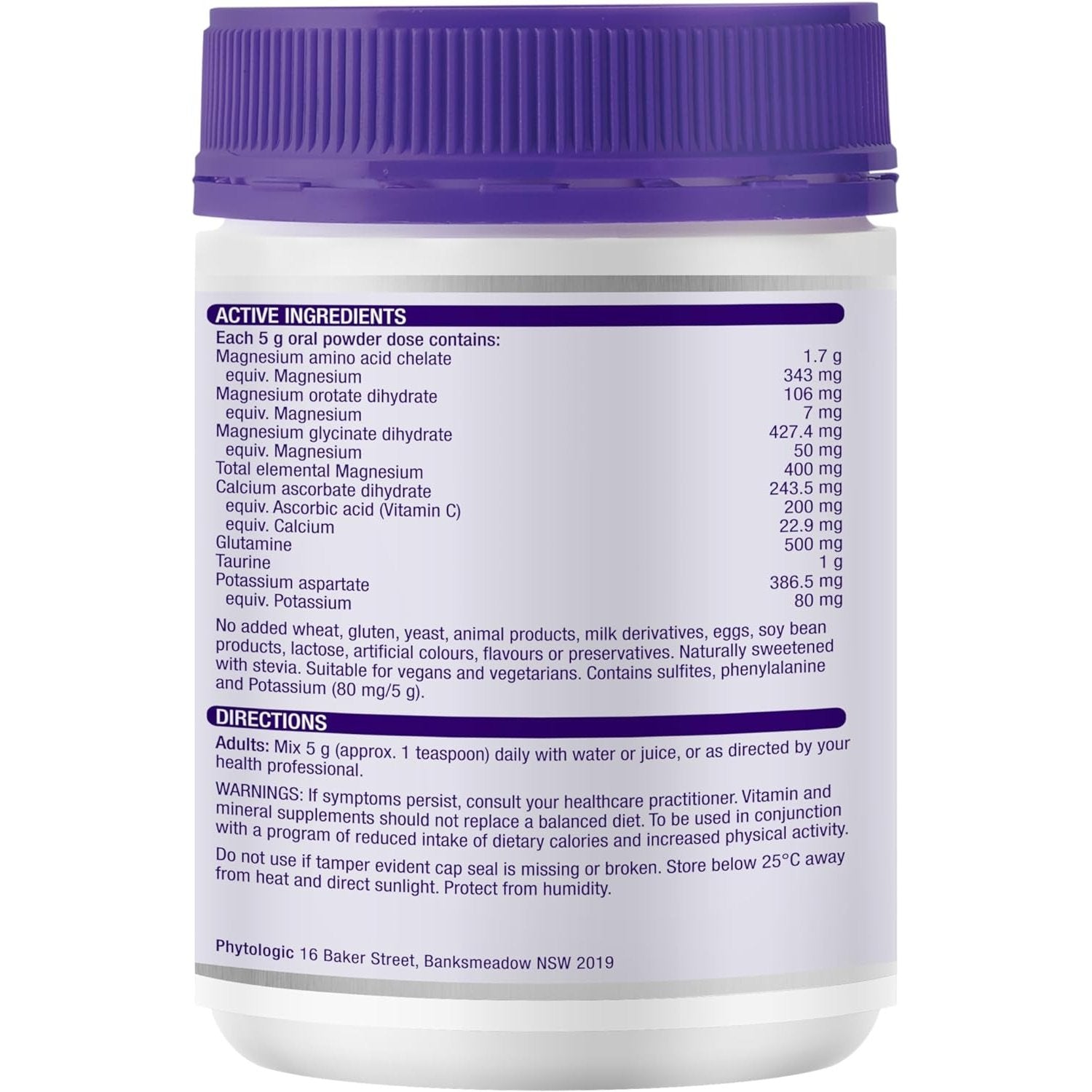 High potency, great tasting, easily absorbed Henry Blooms Magnesium Complex Powder contains Elemental Magnesium with important cofactors Vitamin C, Glutamine, Taurine and Potassium.