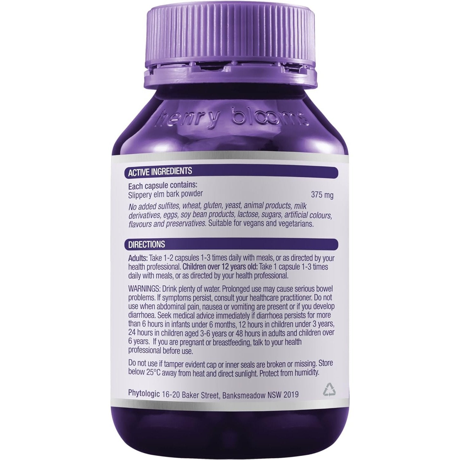 A pleasant way to soothe the stomach! Blooms Slippery Elm Bark capsules are a convenient way to settle an acidic or irritated stomach. It can alleviate heartburn by coating and soothing irritation in upper gastrointestinal tract and also reduces the symptoms of indigestion, constipation and diarrhoea.
