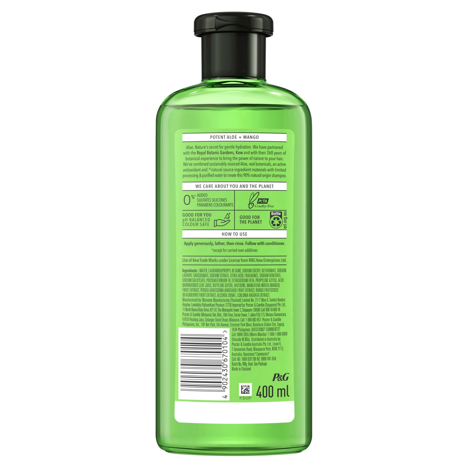 Our Aloe & Mango Shampoo is enriched with real botanicals endorsed by the Royal Botanic Gardens, Kew, a world leading authority on plants.
