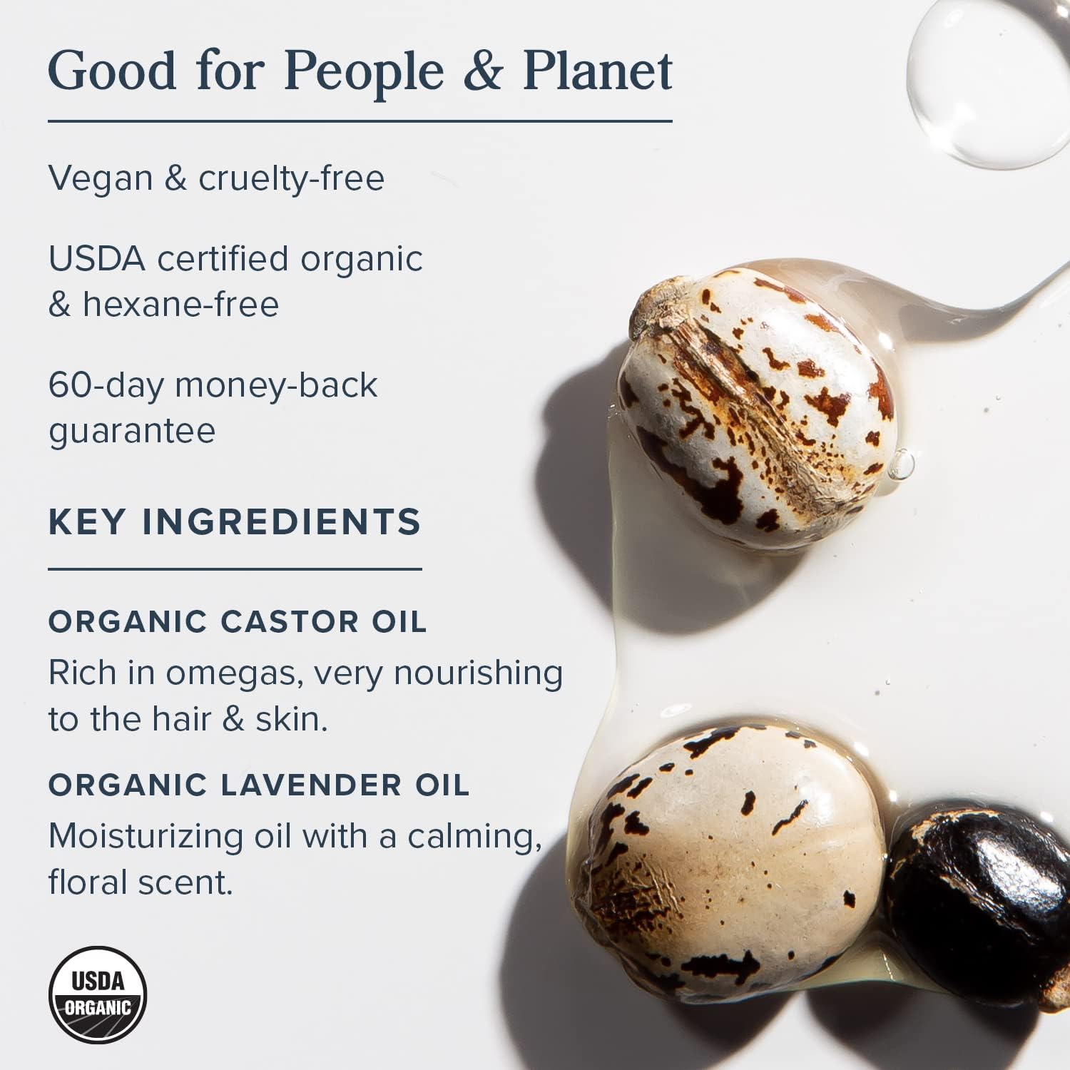 Organic Ricinus Communis (Cold Pressed Castor) Oil, Organic Lavandula Angustifolia (Lavender) Oil.