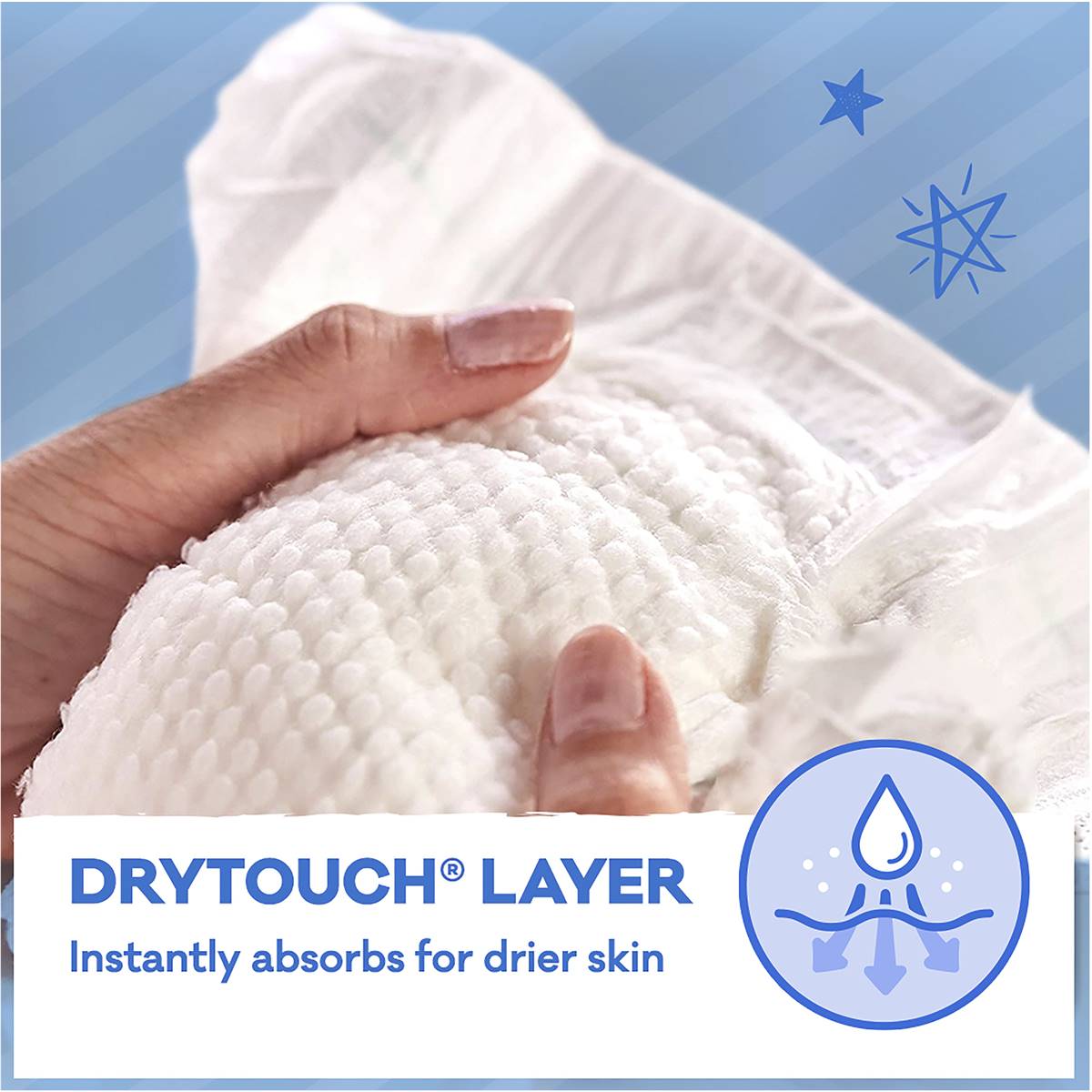 - Soft, stretchy, comfy fit - the stretchy waistband with large grip tabs provides a soft and secure fit just like a hug. The soft cushioned leg elastics help prevent red marks on the baby’s delicate skin.