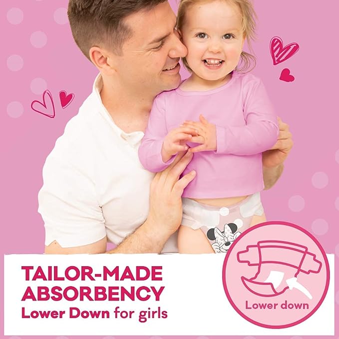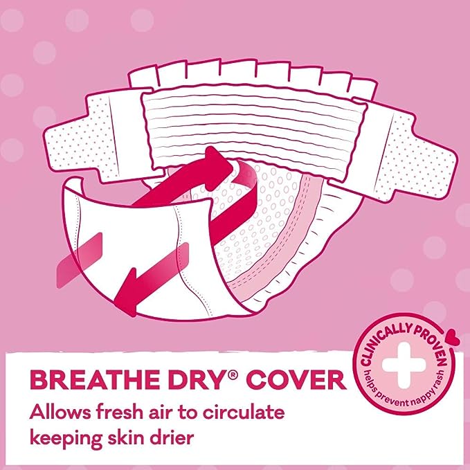 Huggies Ultra Dry nappies help keep baby snug & dry, day & night. Huggies unique Rapid-Dry Technology instantly absorbs lower down where girls need it most. The Breath Dry Cover allows air to circulate around the baby’s bum, helping keep the skin drier, and is clinically proven to help prevent nappy rash. With up to 12 hours of leakage protection, you and bub can sleep through the night.- Tailor-made absorbency is perfectly suited for baby girls. Targeted absorbency lower down where girls need it most.