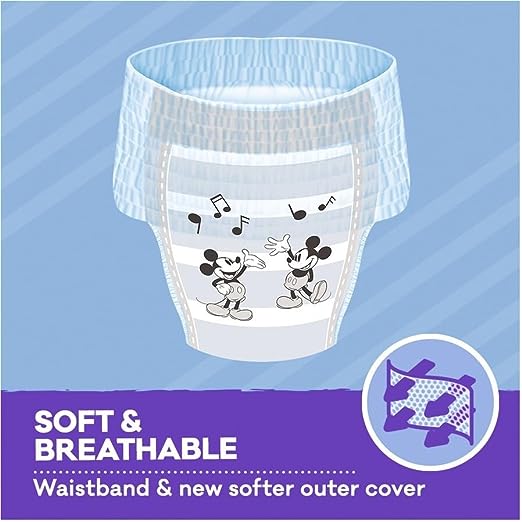 Huggies Nappy Pants are Soft and stretchy 360-degree waistband that provides a comfortable and secure fit. With easy off tear sides with disposable tape on the back makes for easy removal and disposal. Huggies Nappy Pants provide up to 12 hours of leakage protection perfect both as a day and overnight nappy. Easy to pull up and down with fun Disney designs to help aid with toilet training. Tailored absorbency in the front where boys need it the most. Huggies Ultra Dry Nappy Pants are designed to make change time easier whether your active, wriggly baby is laying down or standing up. A pull-up style pant with a 360-degree soft and stretchy waistband that easily tears open on the sides for easy removal and disposal. A pull-up style pant with fun Disney designs helps aid with toilet training or potty training your little one. Huggies Ultra Dry Nappy Pants have up to 12 hours of leakage protection making it great as both a day or night nappy.
