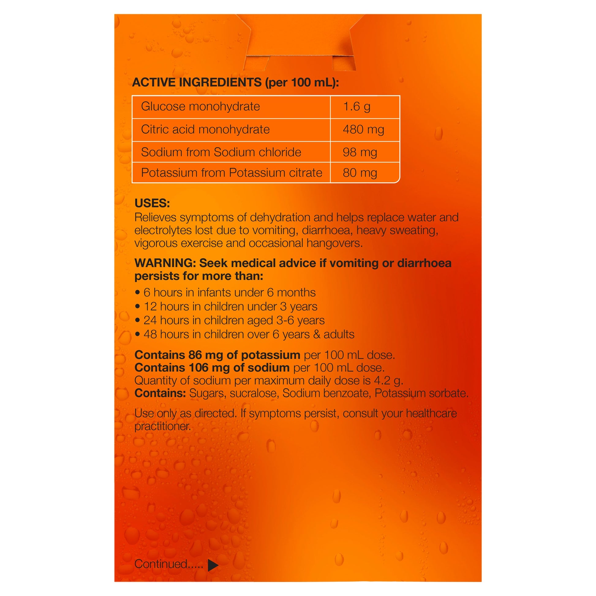 Hydralyte Orange Electrolyte Liquid helps replace water and electrolytes lost due to vomiting, diarrhoea, heavy sweating, vigorous exercise and excess alcohol consumption.