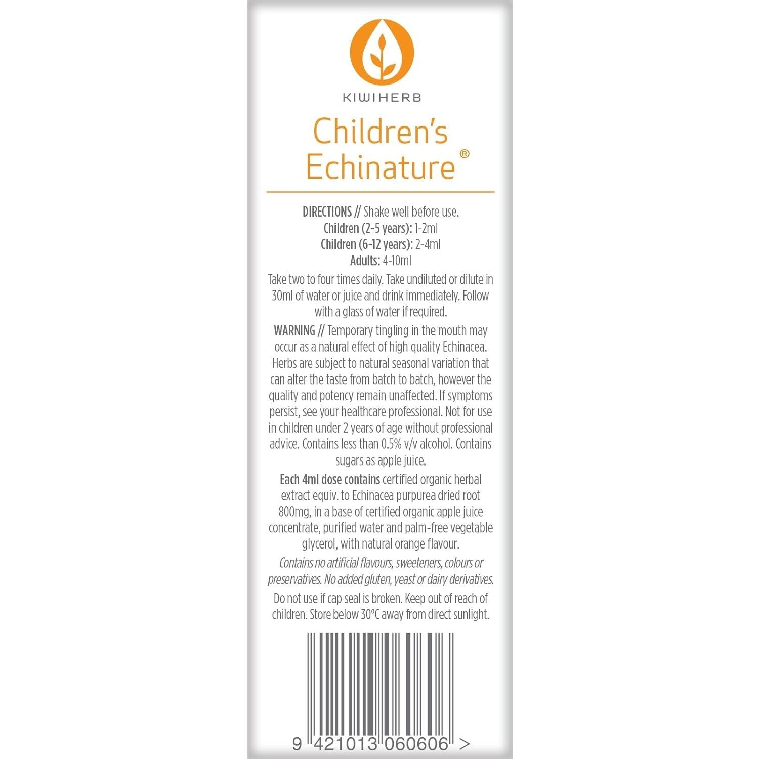 Children's Echinature® is the essential immune product for children, made from premium certified organic Echinacea root, in a base of organic apple juice with natural orange flavour. Being in a convenient liquid form, Children's Echinature is great for children who can't swallow tablets, and it also allows for greater dosage flexibility. Made from premium organic Echinacea root grown in the beautiful Canterbury Plains of New Zealand.