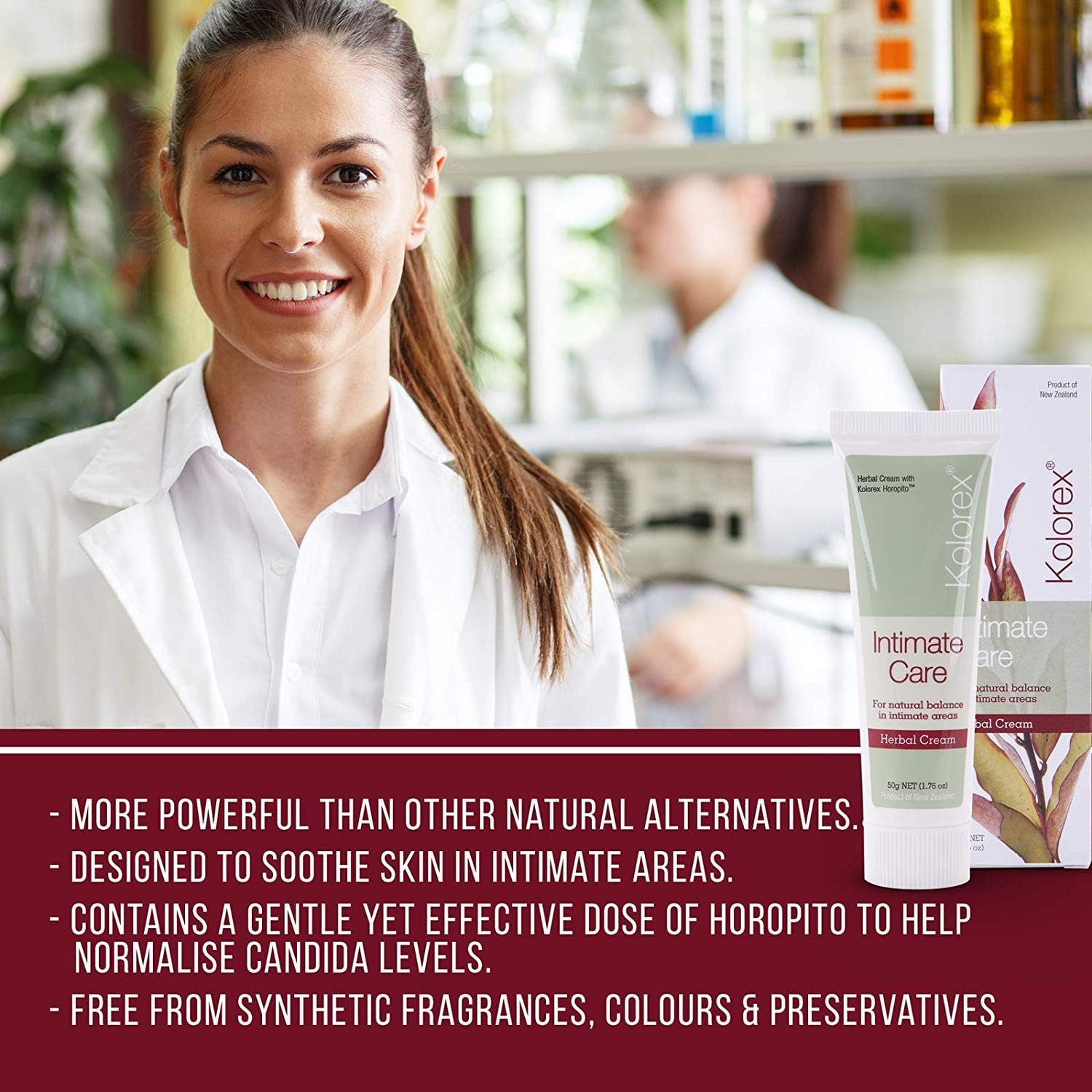 Kolorex® Vaginal Care Cream is pH balanced herbal cream, designed to calm and restore your skin, so that it looks and feels healthy again. With the combined powers of herbal Horopito, Aloe Vera, Tea Tree Oil and Vit E – you’ll find peace from life’s little irritations.