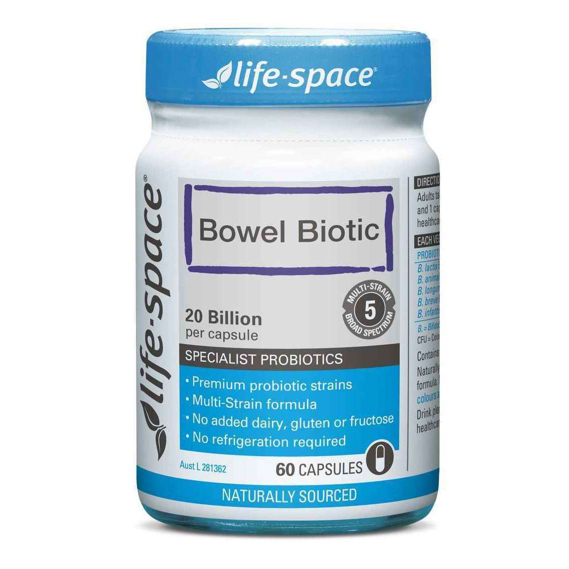 Containing only Bifidobacterium, Life-Space Bowel Biotic is a premium multi-strain probiotic designed to support normal bowel health. Aust L 281362. Bifidobacterium are naturally found in the bowel and are important for maintaining bowel health.