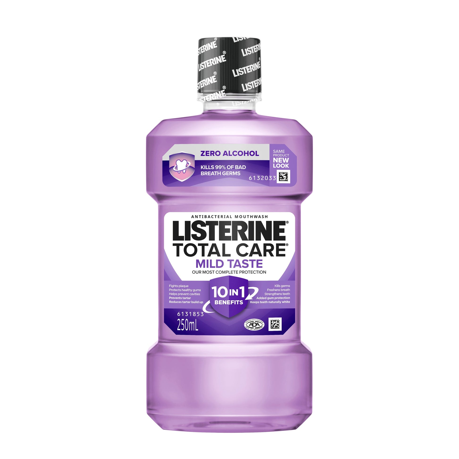 Listerine Total Care Zero Alcohol 6 in 1 Mouthwash has a less intense taste and delivers 6 benefits in 1 for a noticeably healthier mouth.