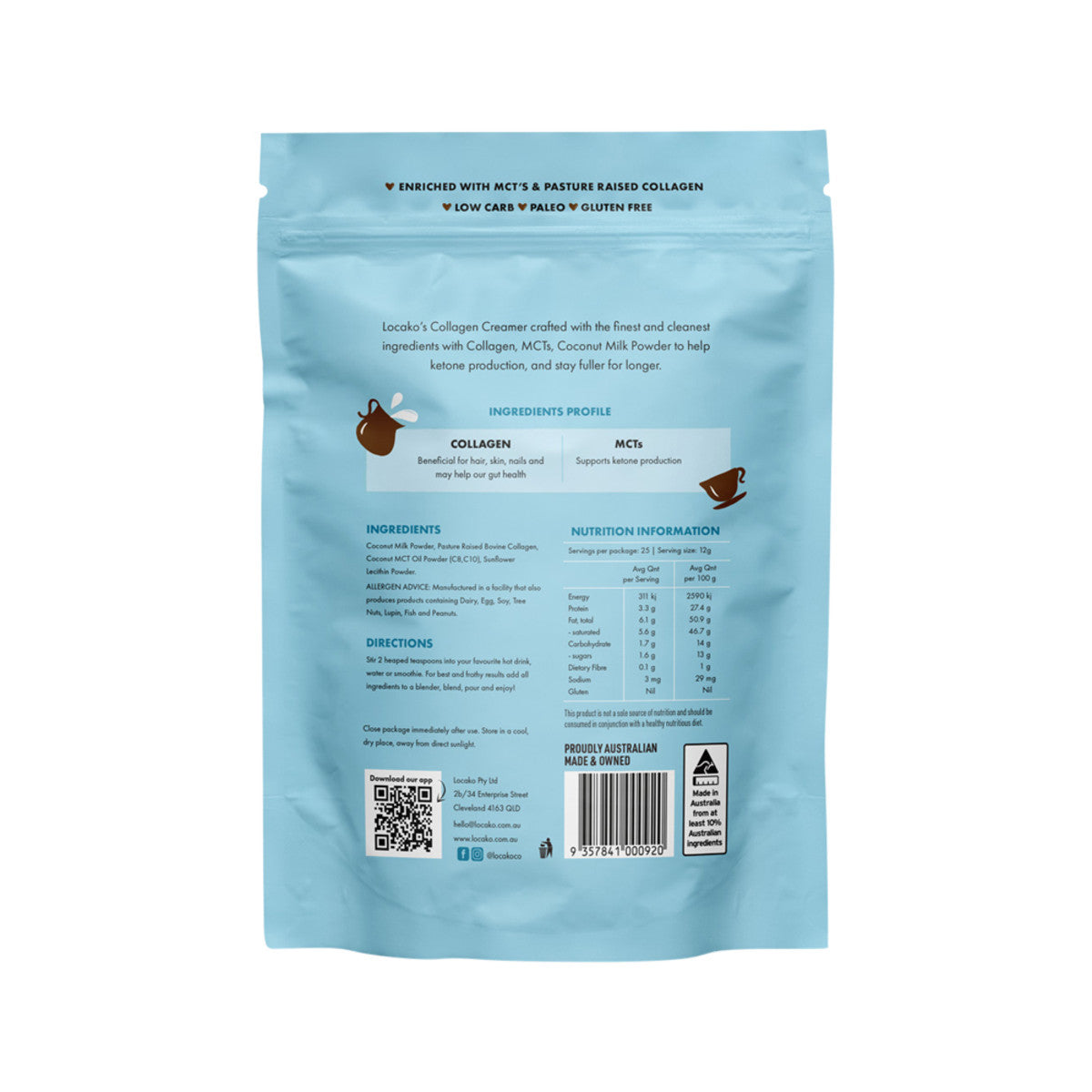- 6g MCTs per serve (MCT’s from coconut milk powder and MCT’s)