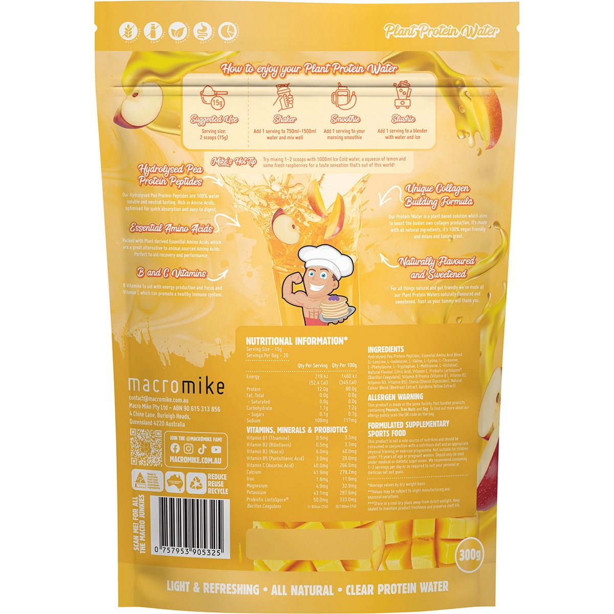 MACRO MIKE Plant Protein Water Apple & Mango 300g