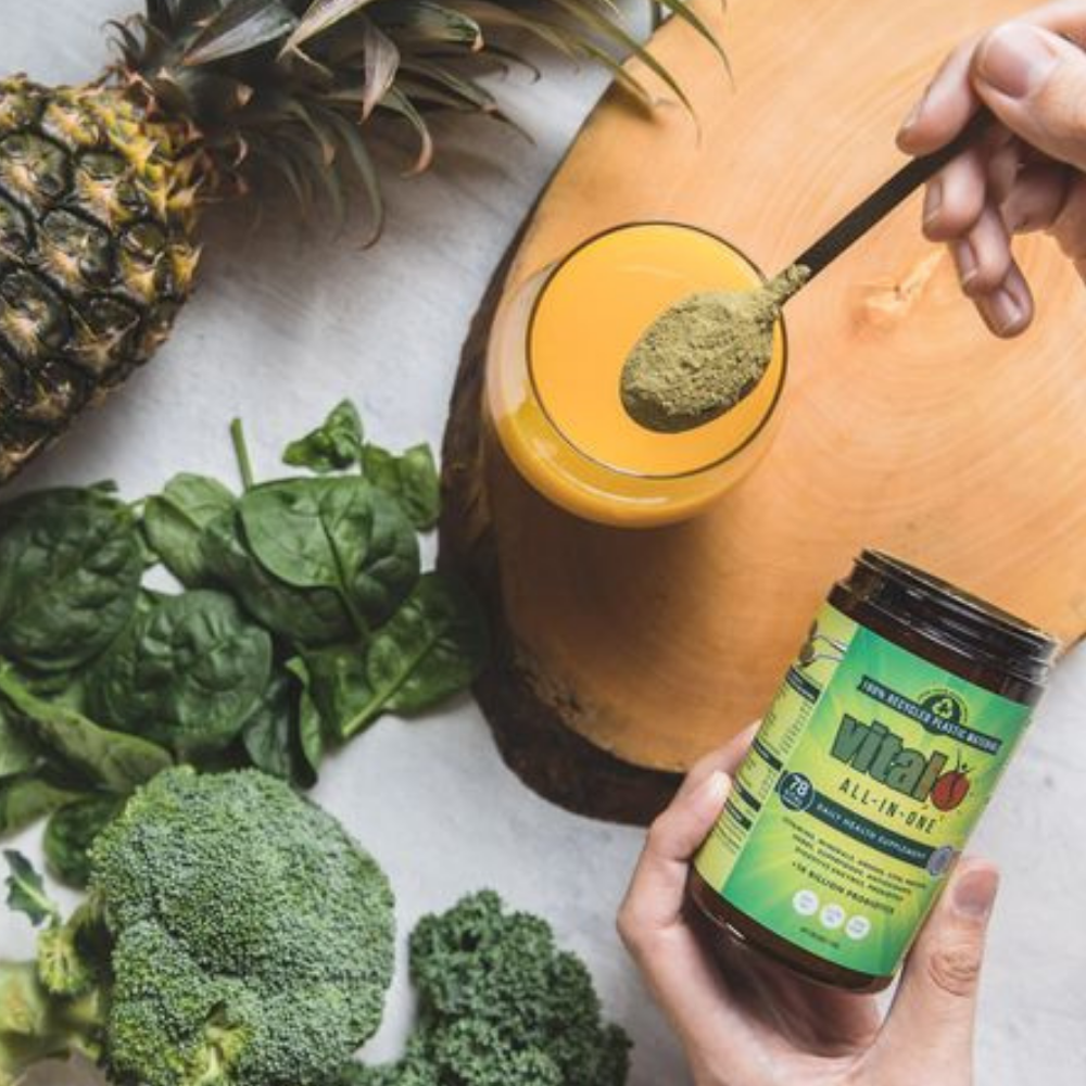 Organic Spirulina, Organic Apple, Organic Chlorella, Organic Kale Sprouts, Organic Wheatgrass, Organic Barley Sprouts, Organic Broccoli Sprouts, Acerola Fruit*, Carica Papaya (With Papain), Pineapple Fruit Juice (With Papain)*, Bilberry Fresh Fruit*, Rosehip Fruit*, Red Beet, Carrot Root, Spinach Leaf, Licorice Root, Wolfberry (Goji) Fruit*, Hawthorne Fruit*, Kelp Whole Plant, Citric Acid (Anhydrous), R,S Alpha Lipoic Acid, Astragalus Root*, Grapeseed*, Green Tea*, Cocoa Bean (45% Polyphenols)*, Rosemary Leaf*, Beta Glucans (From Saccharomyces)*, Reishi Mushroom, Shiitake Mushroom, Resveratol*, Citrus Bioflavonoid, Vitamin C (Vitamin Acid), Calcium (From Calcium Citrate), Potassium (From Potassium Phosphate Di-Basic), Vitamin E (D-Alpha Tocopherol Succinate), Magnesium (From Magnesium Citrate), Vitamin B3 (Nicotinic Acid), Silica (From Colloidal Anhydrous), Zinc (From Zinc Amino Acid Chelate), Co-Enzyme Q10 (Ubidecarenone), Vitamin B5 (Calcium Pantothenate), Vitamin B6 (Pyridoxine Hydrochloride), Vitamin B1(Thiamine Hydrochloride), Vitamin B2 (Riboflavin), Vitamin B3 (Nicotinamide), Pro-Vitamin A (Beta-Carotene), Manganese (From Manganese Amino Acid Chelate), Vitamin B7 (Biotin), Vitamin B9 (Folic Acid), Copper (From Copper Gluconate), Selenium (From Selenomethionine), Vitamin B12 (Cyanocobalamin), Chromium (From Chromium Picolinate), Vitamin D2 (From Ergocalciferol), Rice Bran Powder, Milk Thistle*, Dandelion Root*, Burdock Root*, Globe Artichoke Leaf*, Inulin (Fos Prebiotics), Ginger Rhizome, Bromelain, Aloe Vera Gel*, Bifidobacterium Bifidum, Lactobacillus Acidophilus, Bifidobacterium Lactis, Bifidobacterium Longum, Papain (From Carica Papaya And Pineapple), Siberian Ginseng*, Lecithin (95% Phosphatides), Organic Flaxseed Powder, Gotu Kola Leaf*, Withania Somnifera (Ashwaganda)*, 100% Pea Protein Isolate, Natural Vanilla Flavour, Natural Pineapple Flavour, Thaumatin, Stevia, Monk Fruit And Xanthan Gum. *Extract Equivalent amount.VG06CPP