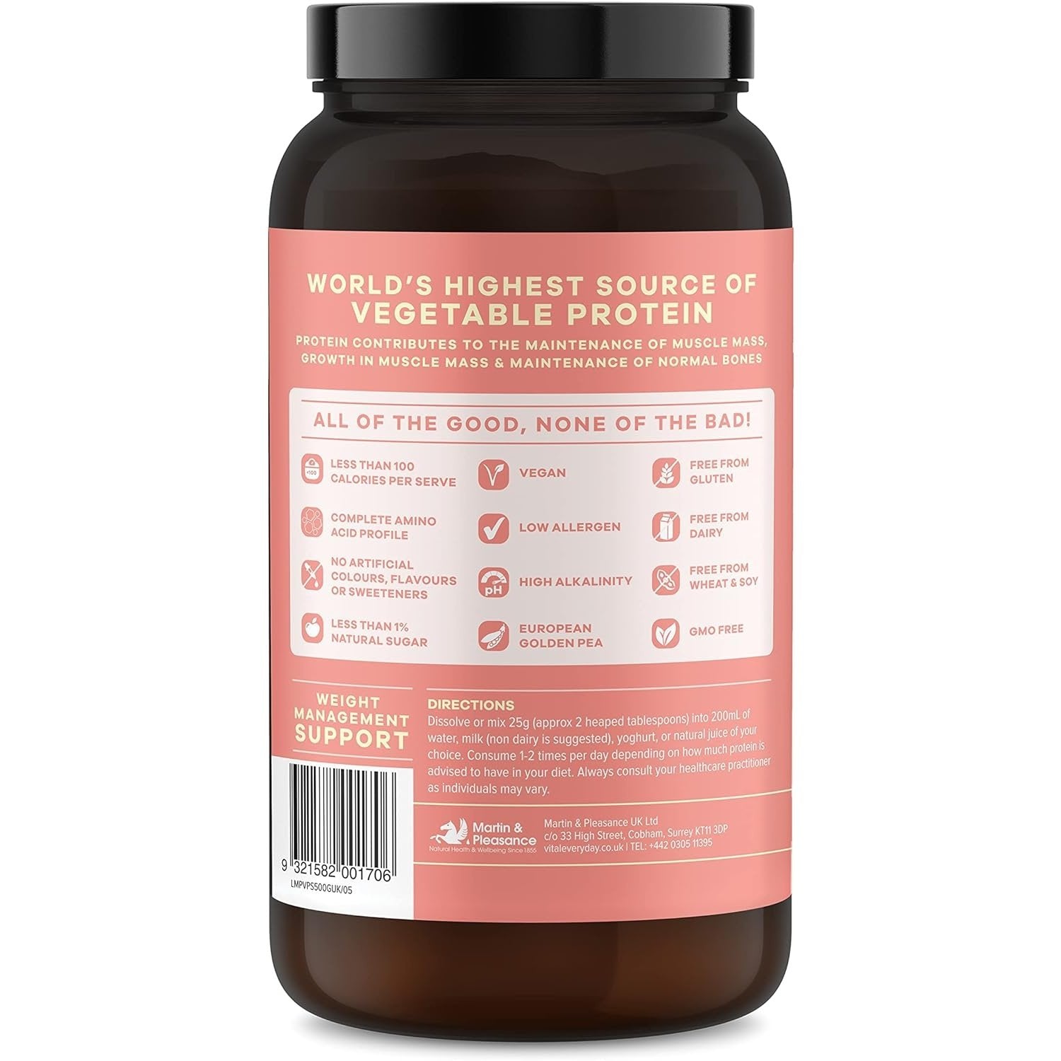 Martin & Pleasance Vital Protein 100% Natural Plant Based (Pea Protein Isolate) Strawberry 500g