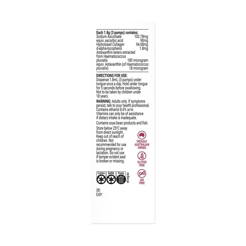 Product Claims: Antioxidant/Reduce free radicals formed in the body Maintain/support collagen formation Maintain/support general health and wellbeing Maintain/support skin health Maintain/support wound healing Maintain/support skin repair/healing/regeneration