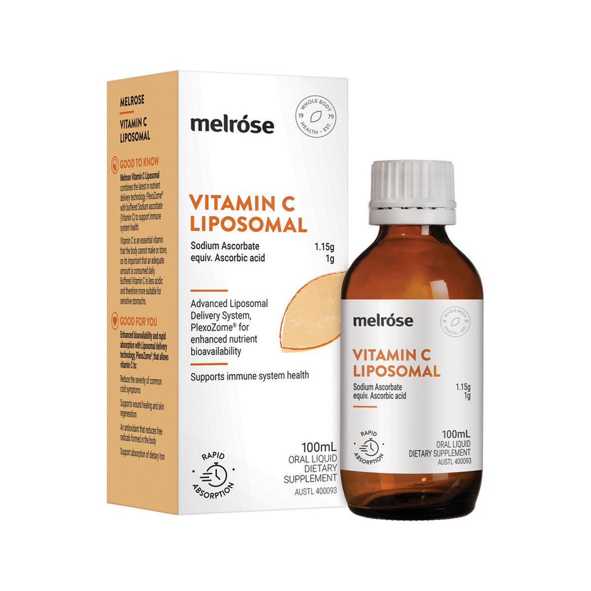 Melrose Vitamin C Liposomal combines the latest in nutrient delivery technology, PlexoZome® with buffered Sodium ascorbate (Vitamin C) to support immune system health.