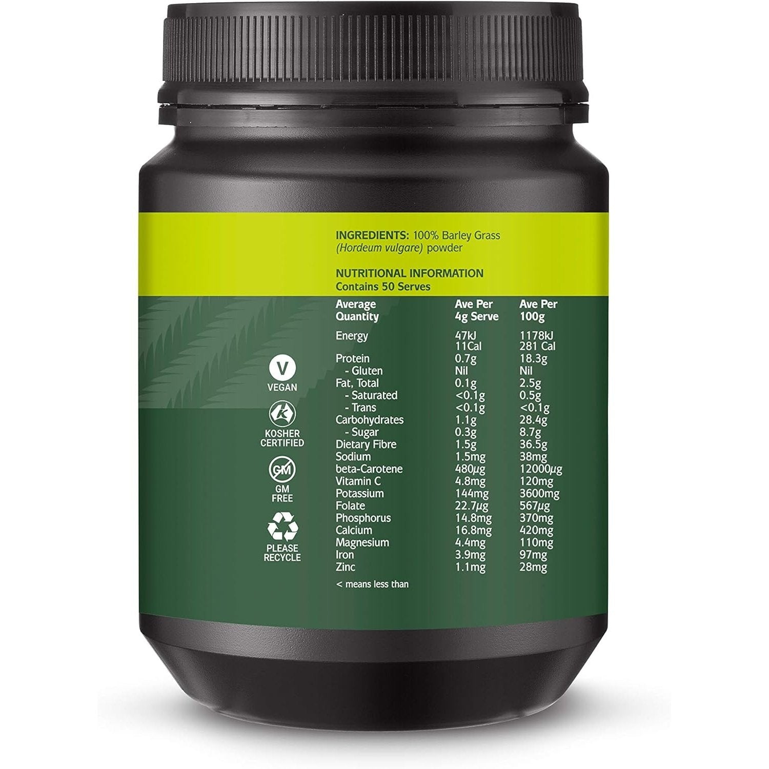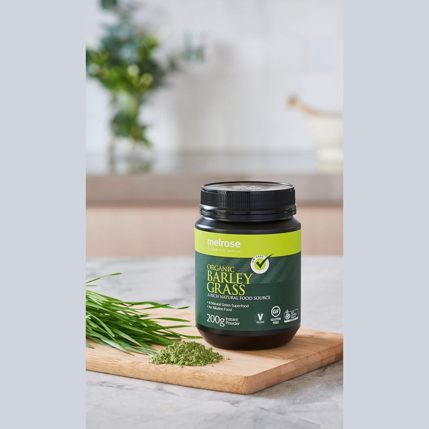 Melrose Barley Grass is a green superfood made from the powdered dehydrated leaves of organically grown young barley plants, providing a good supplement for diets deficient in green vegetables. Barley Grass naturally contains dietary fibre, minerals, vitamins, antioxidants, chlorophyll and folate, an essential B vitamin.