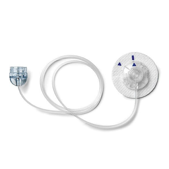The Quick-set infusion set provides the convenience of a disconnect at the infusion site and a pre-attached adhesive for a discreet, low profile design.