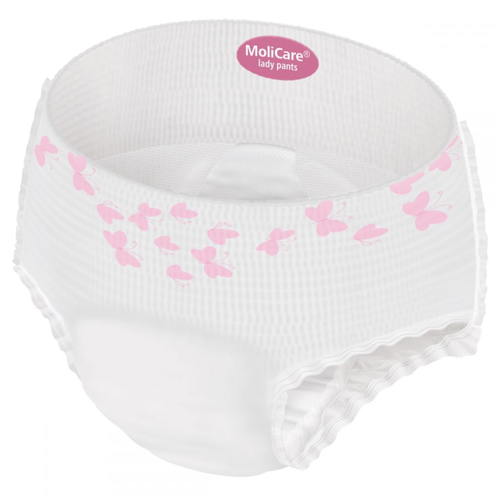 MoliCare Premium lady pants look and feel like regular underwear through anatomical shape, soft material and elastics for a comfortable fit and discreetness. Curly fiber layer provides a highly antibacterial and pH 5.5 neutral effect to maintain healthy skin. MoliCare Premium lady pantsare dermatologically tested. The absorbent core neutralises odour and holds liquids quickly for a dry feeling. Maximum protection is secured, based on high quality material and anti-leakage system. Worn like normal underwear, the products can be easily pulled on and off. Their ease of use enables active patients to continue with their autonomic life.
