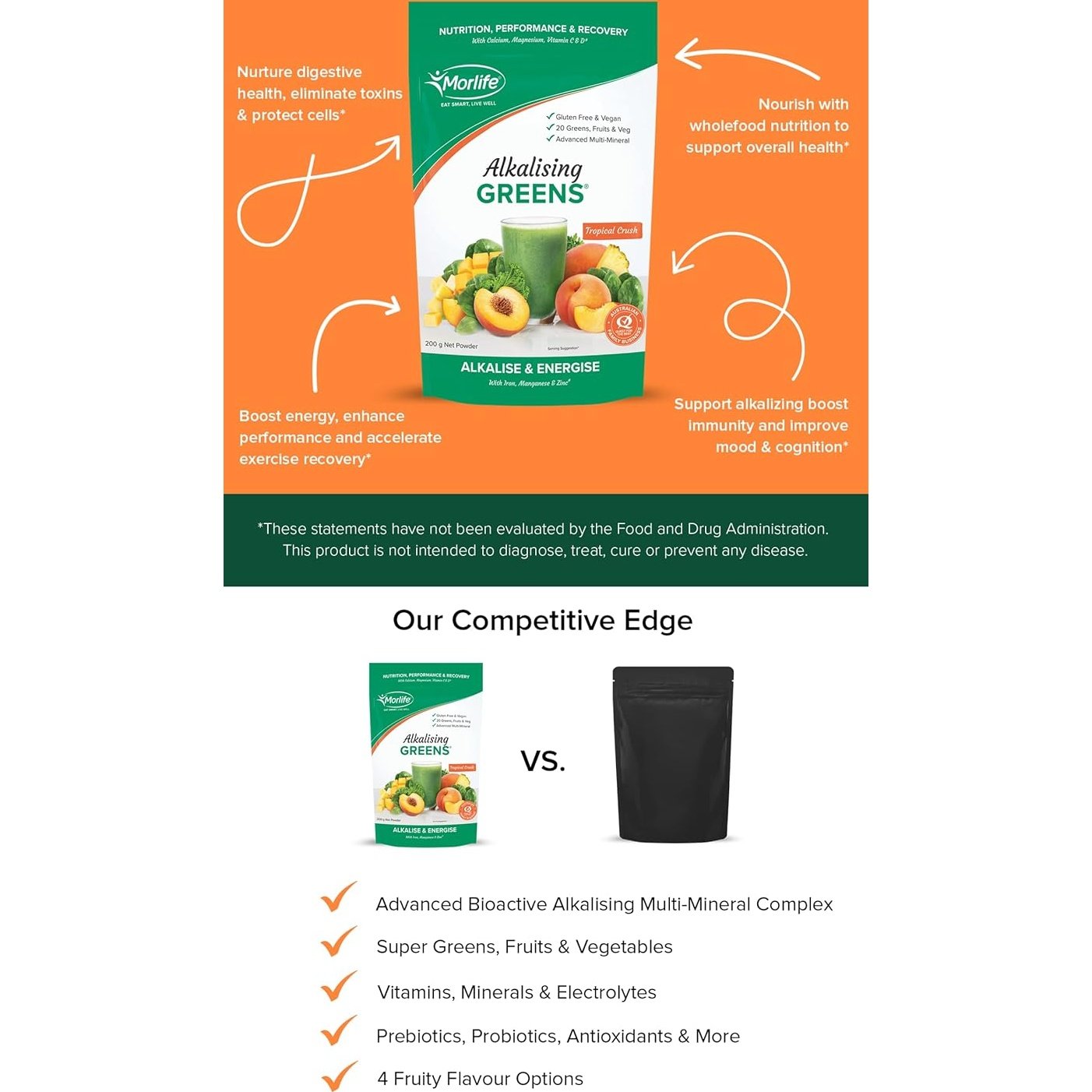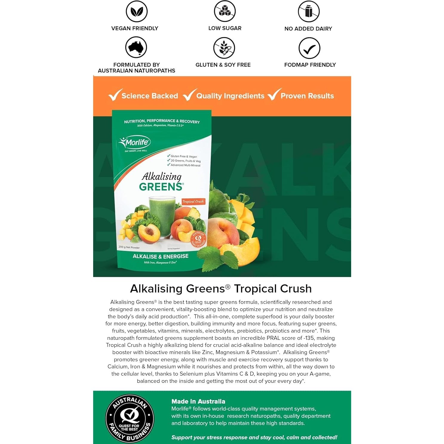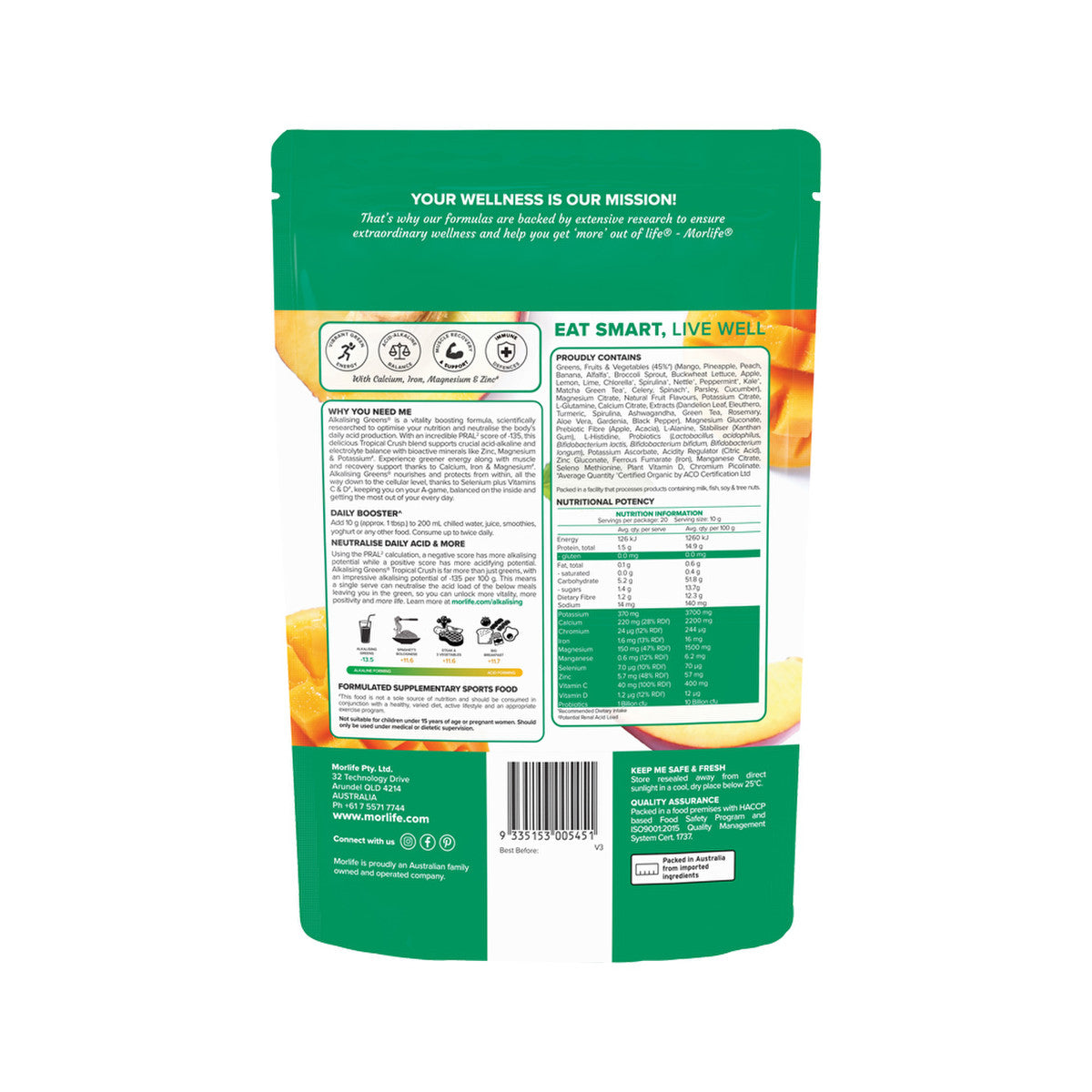 Morlife Alkalising Greens Tropical Crush 200g
