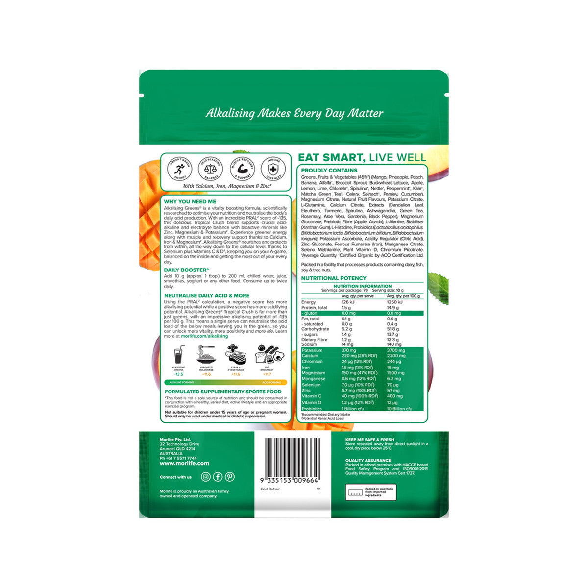 Morlife Alkalising Greens Tropical Crush 700g