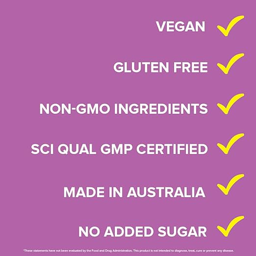 Fruit (56%*) (Mango, Mandarin, Orange, Black Goji), Fortifying Herbal Extracts (22%*) (Acerola Cherry, Elderberry (6%*), Siberian Ginseng, Echinacea (2%*), Maitake, Lemon Balm, Turmeric, Carrot, Green Tea, Grape Seed, Black Pepper, Shiitake), Natural Fruit Flavours, Rice Extract, Acacia Fibre, Anticaking Agent (Silicon Dioxide), Probiotic Cultures (L. acidophilus, B. bifidum, B. longum, B. lactis), Minerals (Zinc, Selenium), Glutamine, Astragalus, Garlic, Vitamins (B6, D, B12). *Average Quantities.