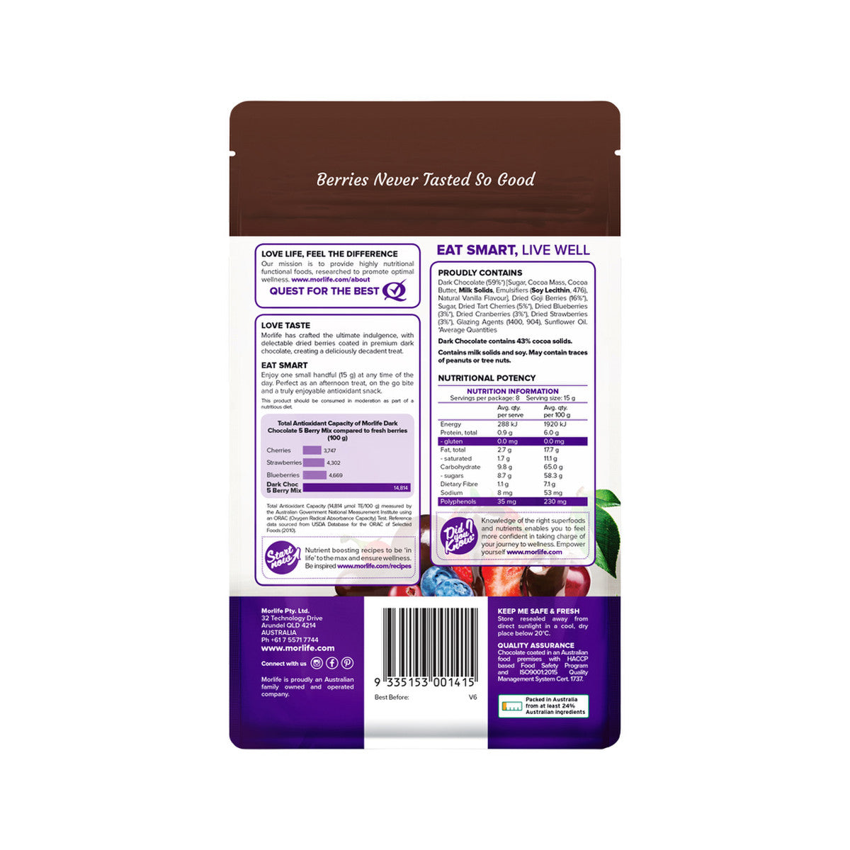 Morlife has created the ultimate indulgence, with delectable dried berries coated in premium dark chocolate, creating a deliciously decadent treat.