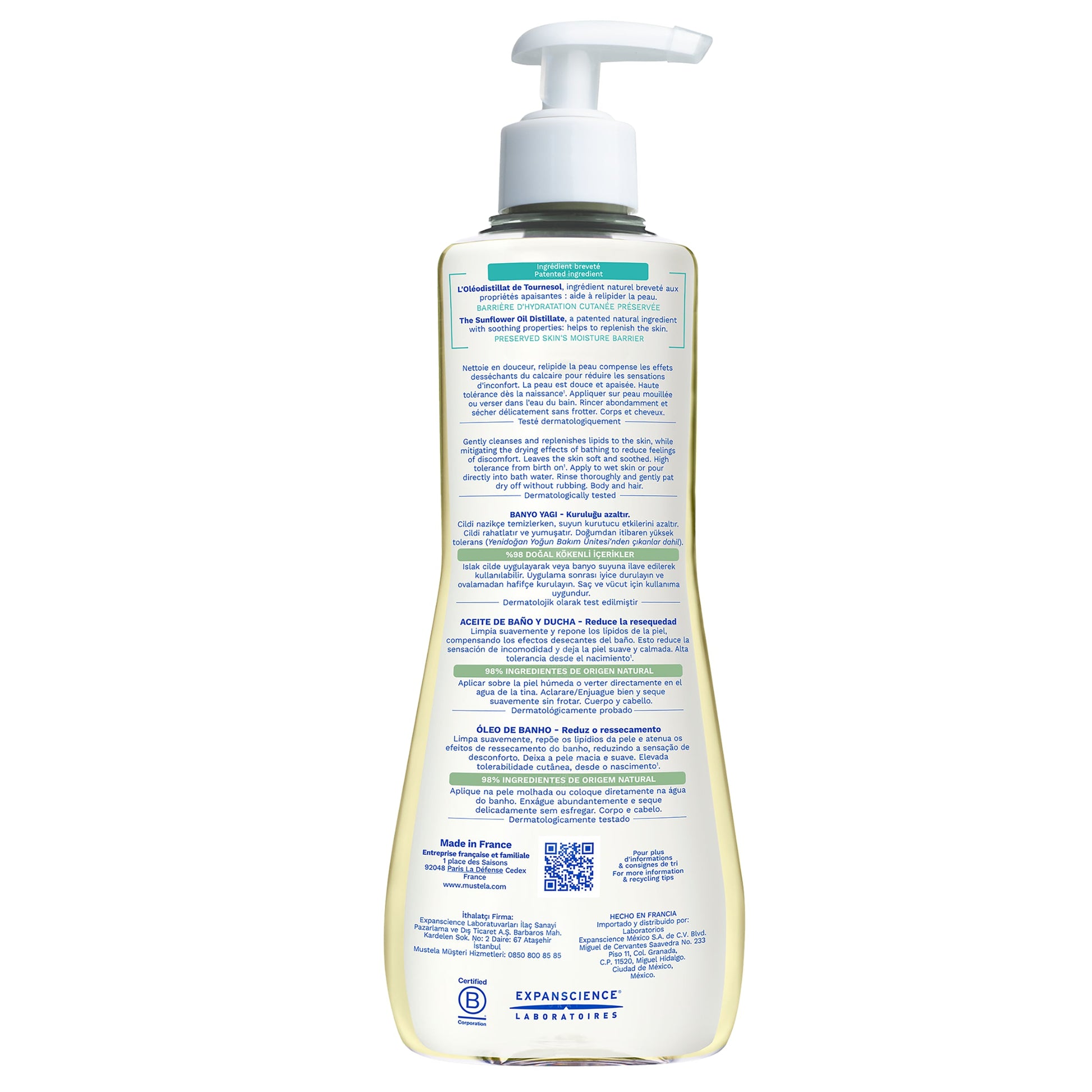 Can be used directly on the wet skin of the baby and needs to be rinsed, or as bath additive in the bath water. In the second case, no need to rinse off as it will leave a protective film on the skin.
