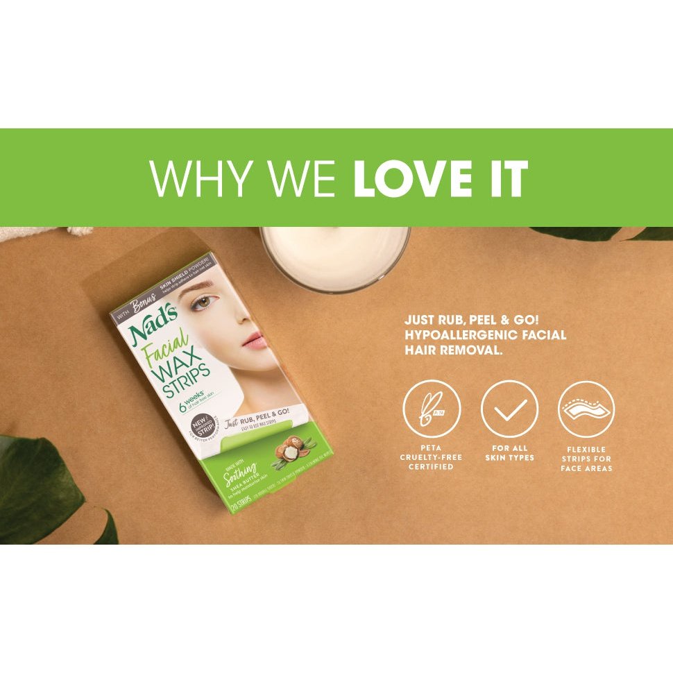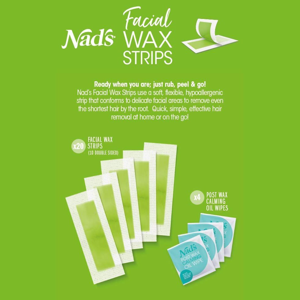 Nad's Facial Wax Strips are mini wax strips that have been specifically developed for sensitive, delicate facial areas. Quick and easy - no heat or preparation. Just rub, peel and go!