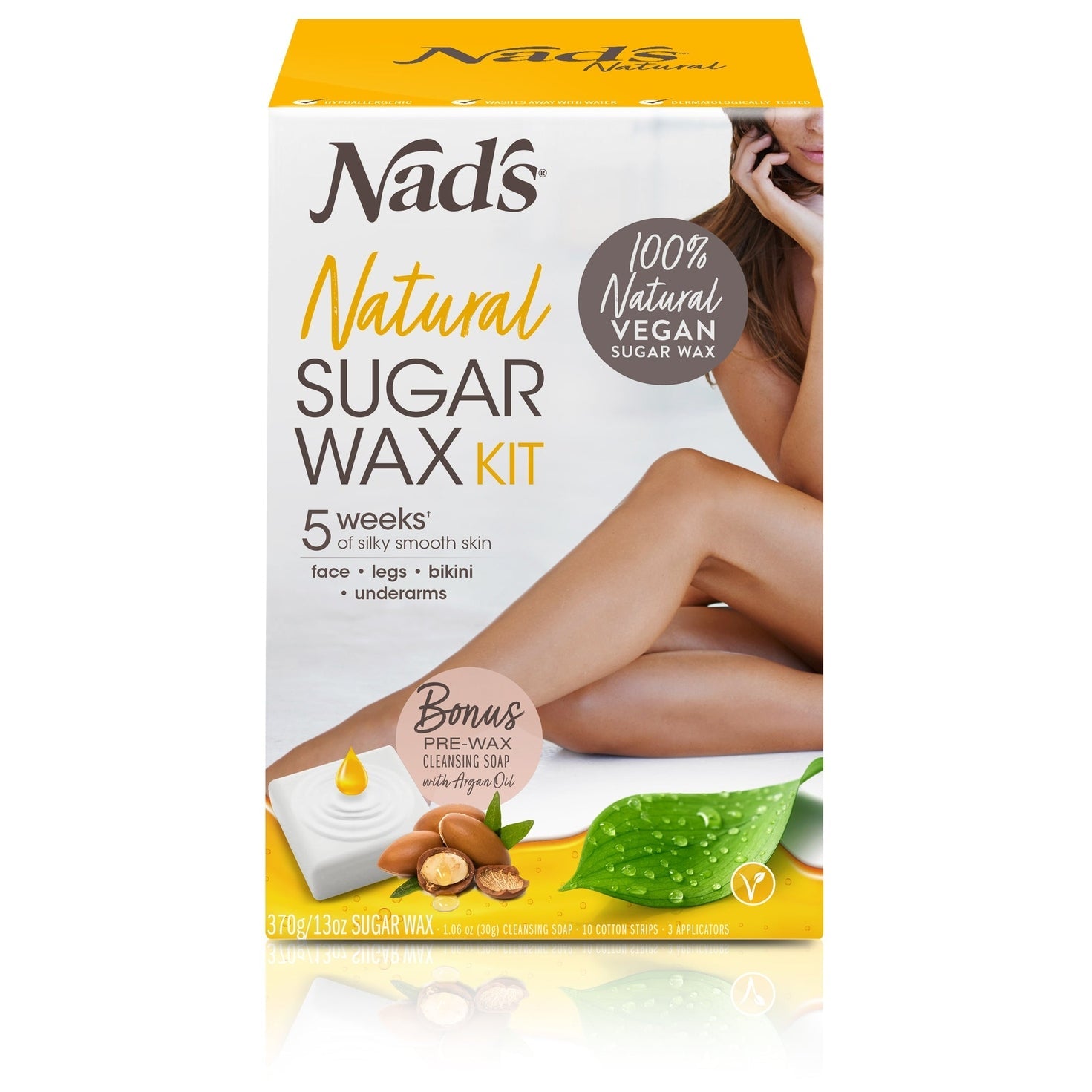 Nad’s Hair Removal Natural Sugar Wax warms with body heat as it’s smoothed onto the skin and waxed away – along with your unwanted hair – to leave the skin hair free for weeks. The mistake-proof formula easily washes away with water giving you the confidence to achieve salon results at home. The kit includes Nad's Natural Sugar Wax, 100% cotton washable and reusable strips, wooden applicators, and BONUS naturally derived pre-wax cleansing soap with argan oil.