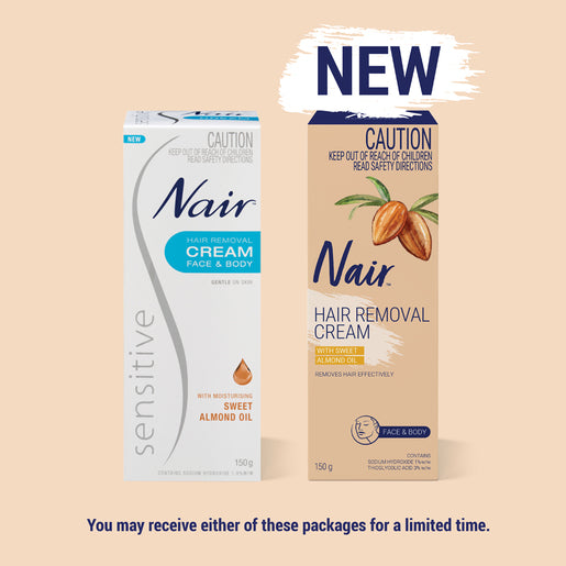 Nair Sensitive Hair Removal Cream is specially formulated for people with sensitive skin and is gentle enough to use anywhere on the body - legs, bikini area, underarms and face. Enriched with Sweet Almond Oil and Baby Oil, it helps to maintain moisture levels of the skin and prevent irritation. Perfect for sensitive skin, Nair Sensitive Hair Removal Cream will moisturise your skin leaving it soft and smooth.