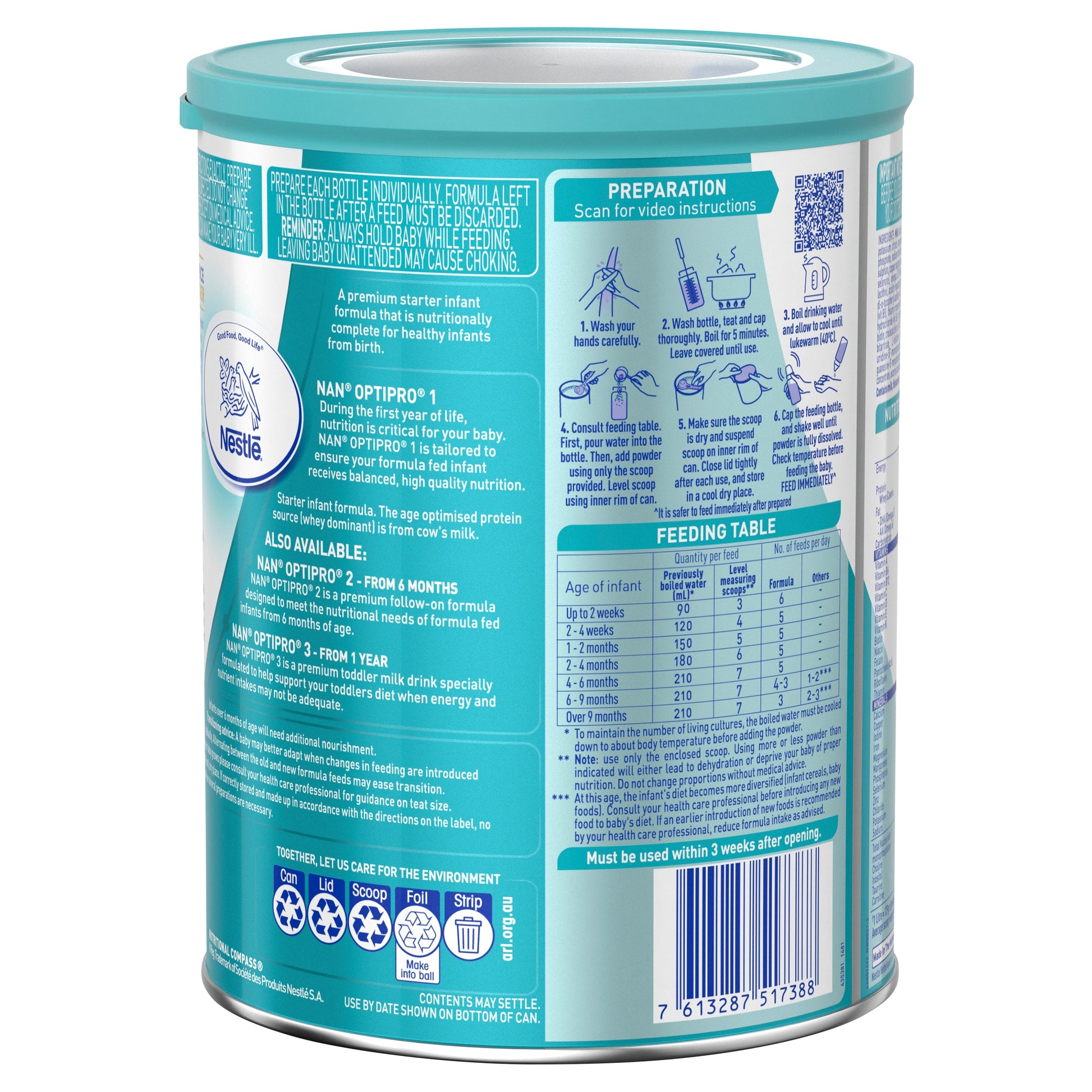NAN OPTIPRO 1 is a premium starter infant formula that is specially designed to help ensure your formula fed infant receives balanced, high quality nutrition. NAN OPTIPRO 1 is nutritionally complete for healthy infants from birth.