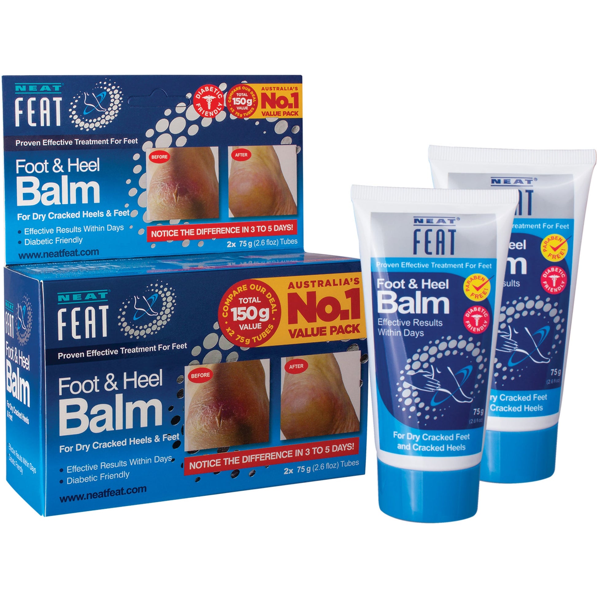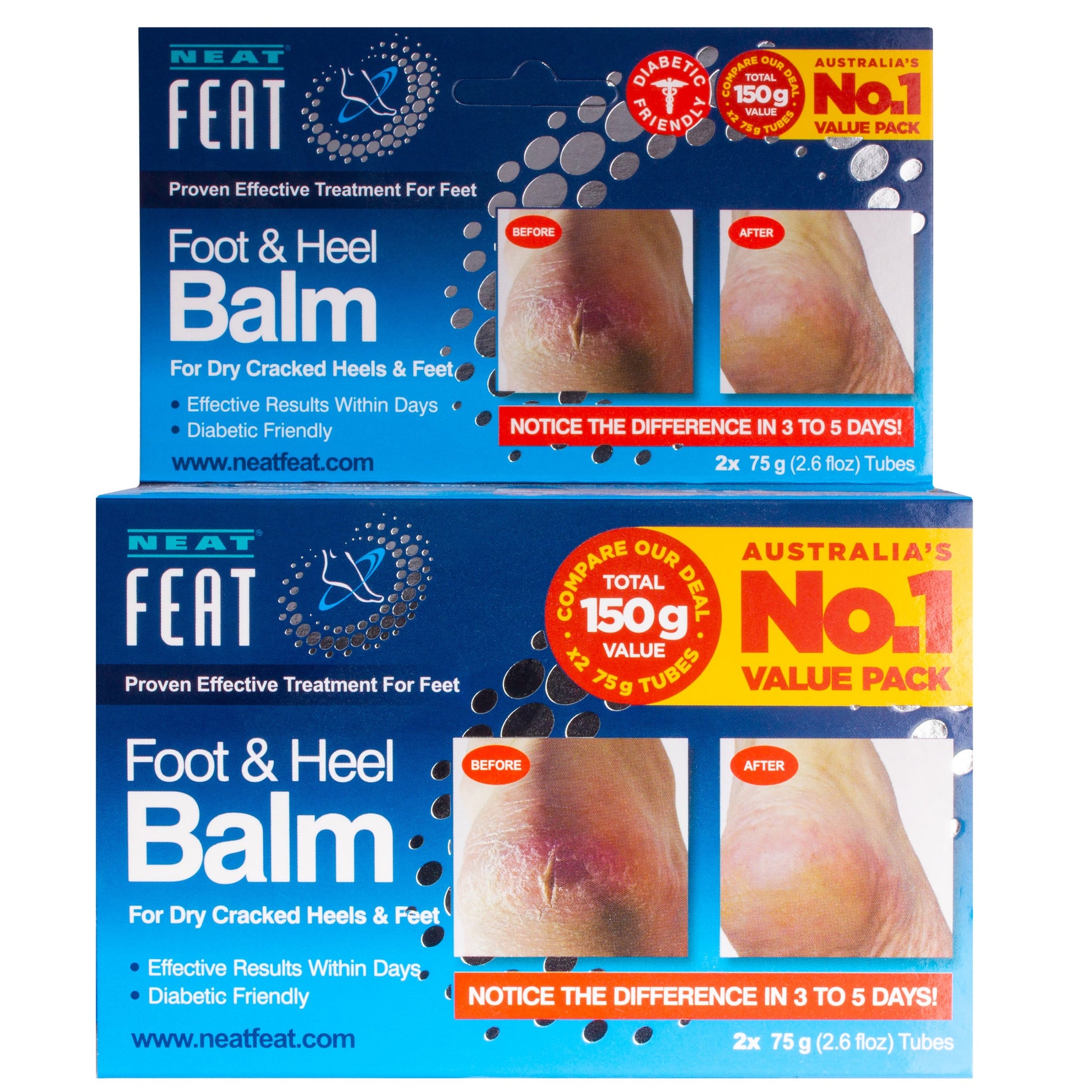 Neat Feat's Heel Balm is an oil based products, this enables the balm to stay over the affected area, and the active ingredient rehydrates the skin, repairing damage with noticeable results within 5 days. Neat Feat Heel Balm 120g - 2 for the price of 1.