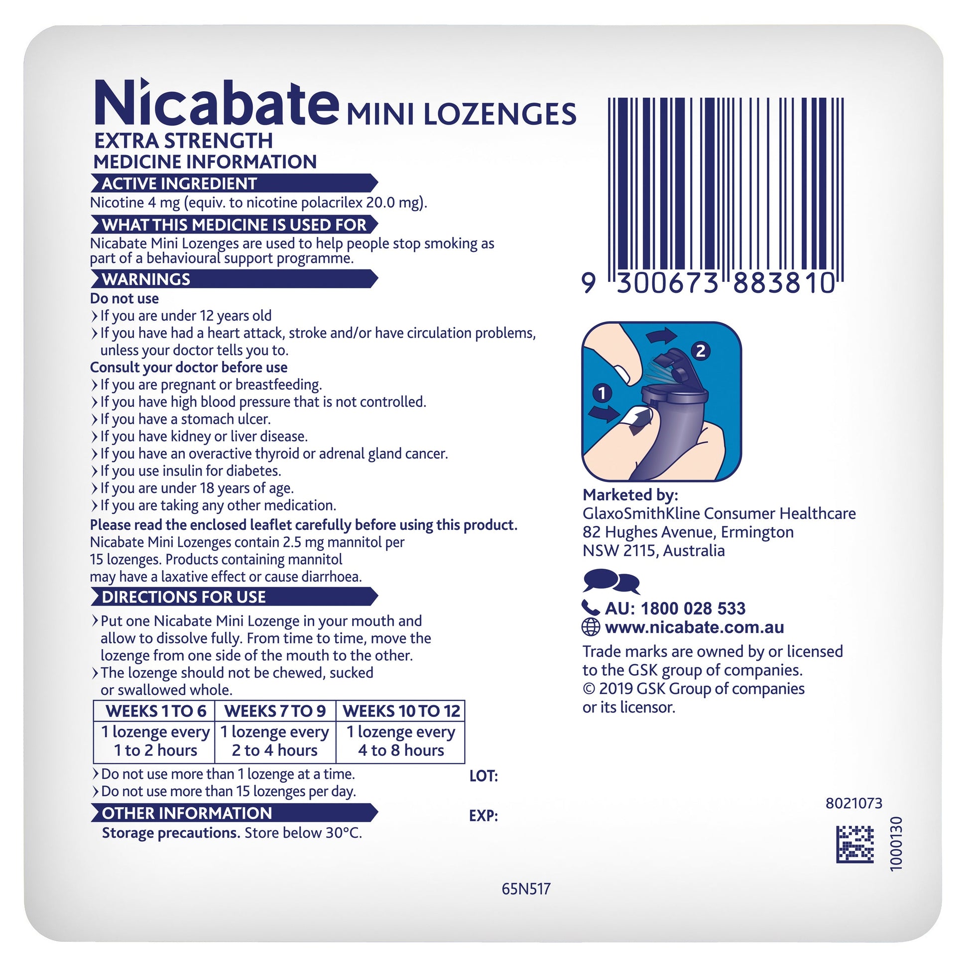 Nicabate Minis 4mg Mint Lozenges Extra Strength X 20 act to relieve cravings in minutes. This allows you to quit one cigarette at a time, at a pace that suits you, to help you stay calm, be prepared and in control of your quit journey.