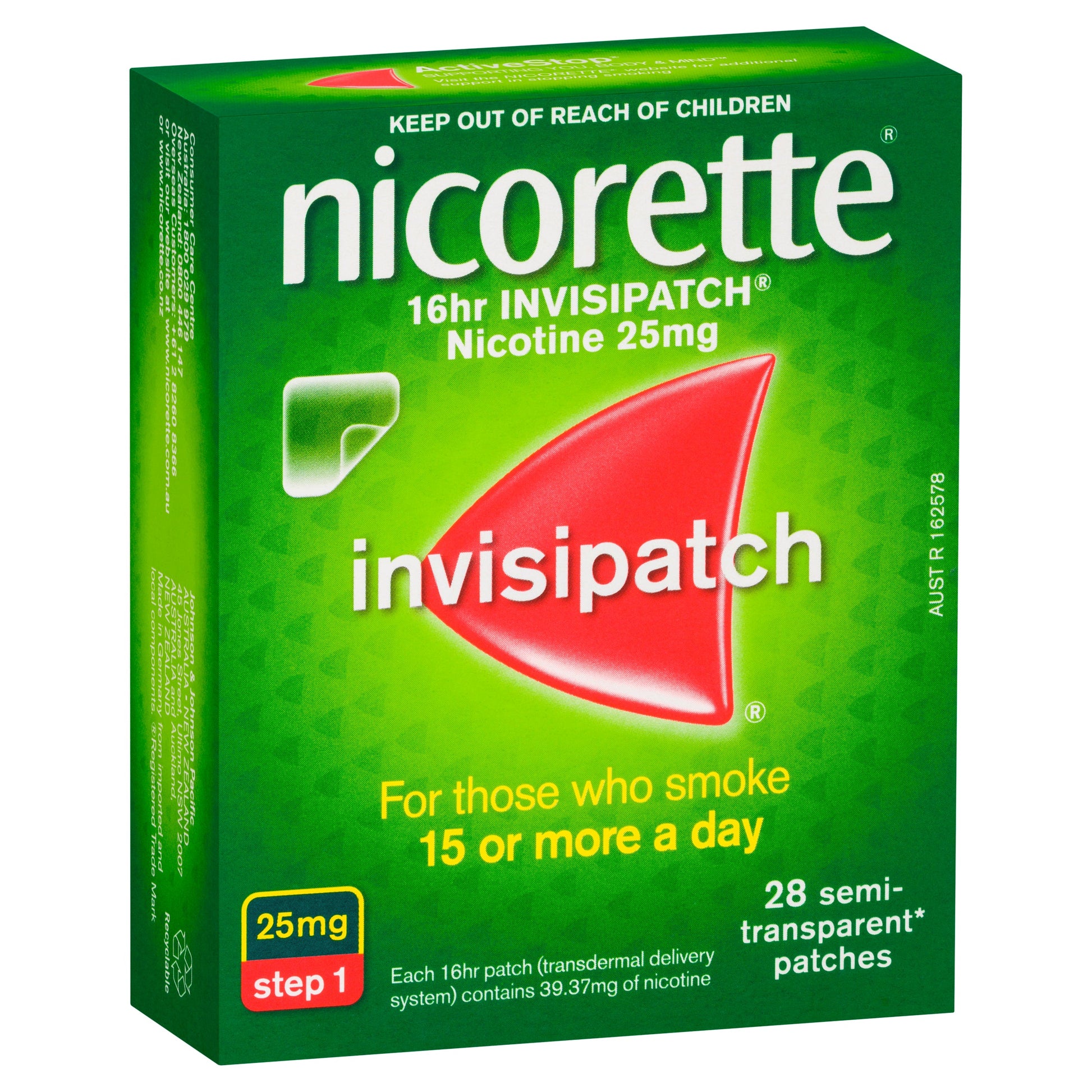 Nicorette 16hr Invisipatch Patches Step 1 25mg is a quit smoking aid for those who smoke 15 or more a day.