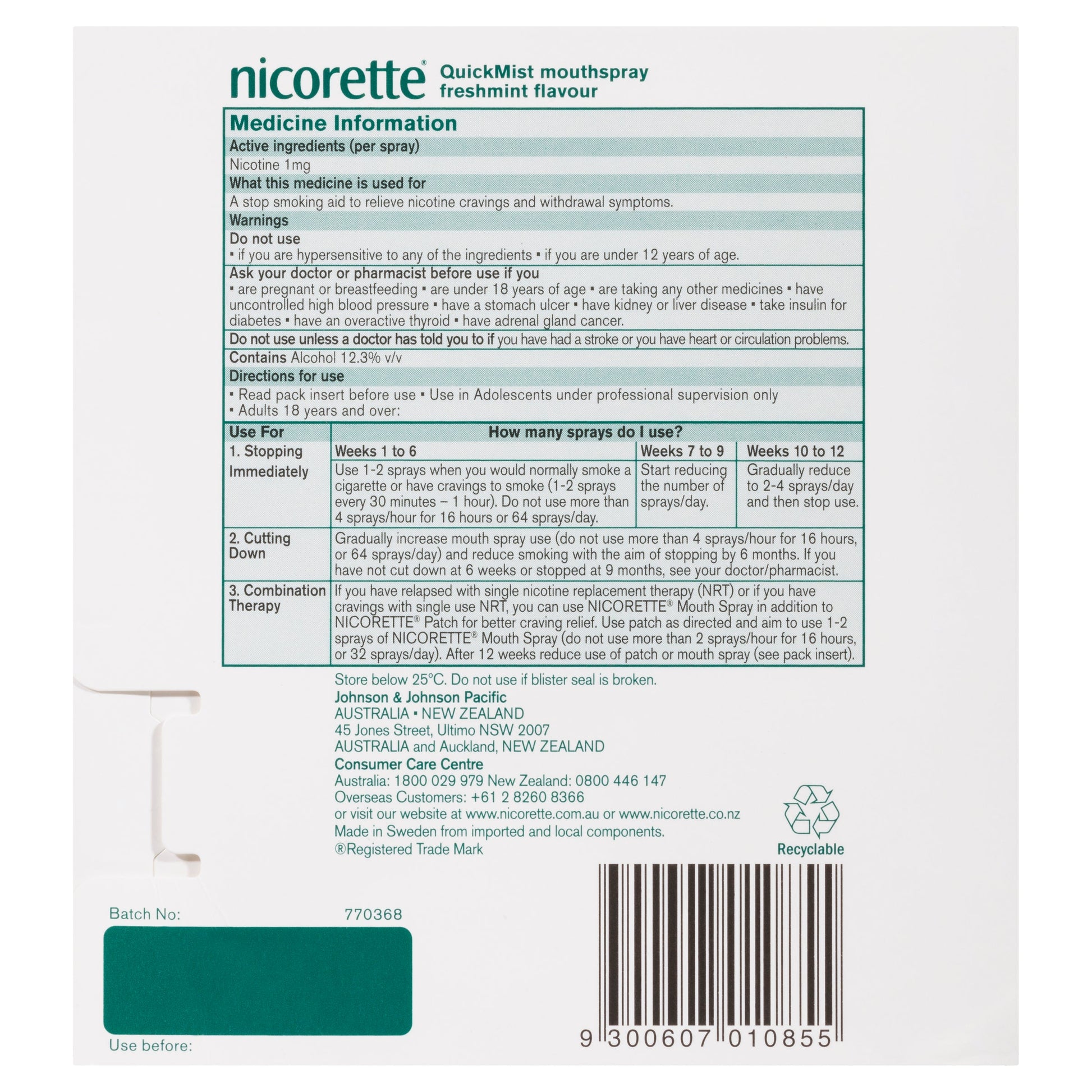 Use one to two sprays when you would normally smoke a cigarette or have cravings to smoke.