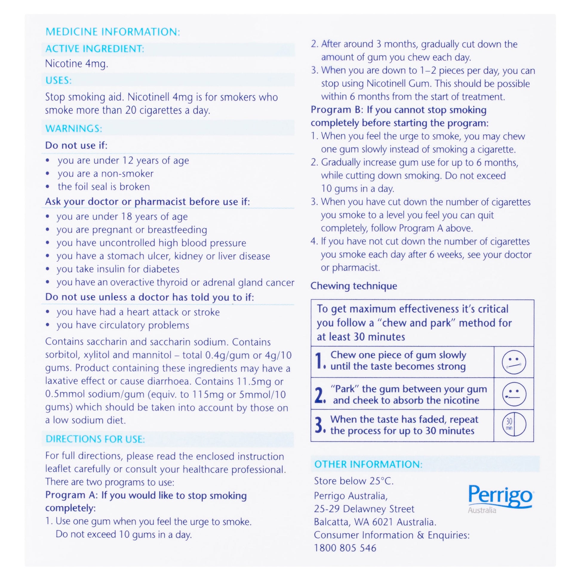 Nicotinell Gum is available in two strengths. If you smoke 20 or more cigarettes a day; we recommend using the 4mg strength, and if you smoke less than 20 cigarettes a day; we recommend using the 2mg strength. We recommend gradually reducing the number of pieces you chew a day.