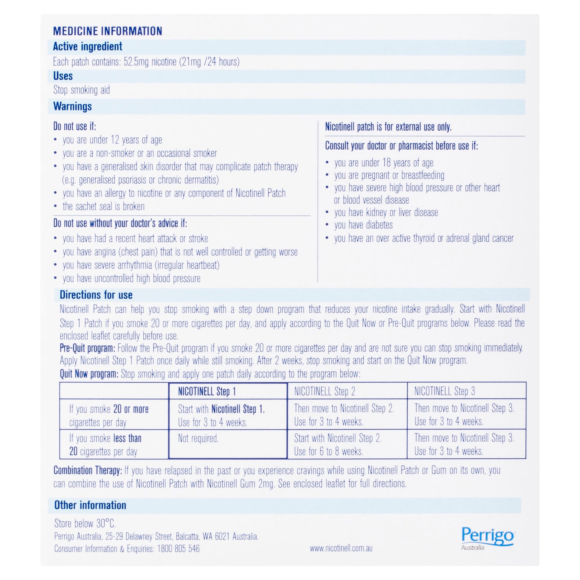 Available in 21mg, 14mg and 7mg strengths (over 24 hours). Nicotinell patches help you take control of your habit discreetly and without fuss. By stepping down from 21mg or 14mg patches, your quitting journey can be self-paced.