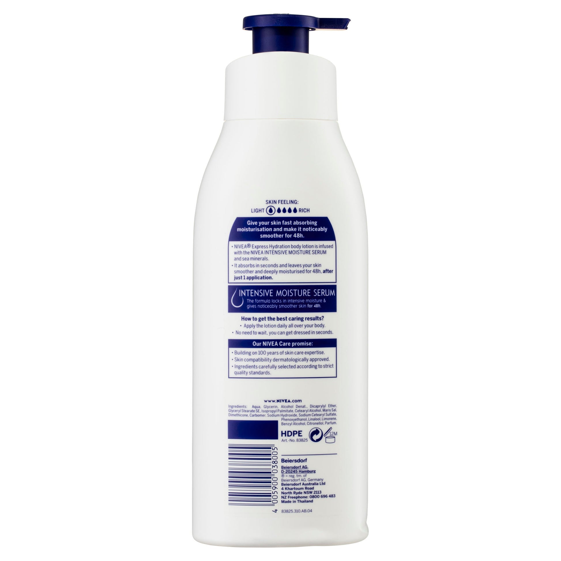 48h fast absorbing deep moisture care and noticeably smoother skin: NIVEA Express Hydration body lotion.