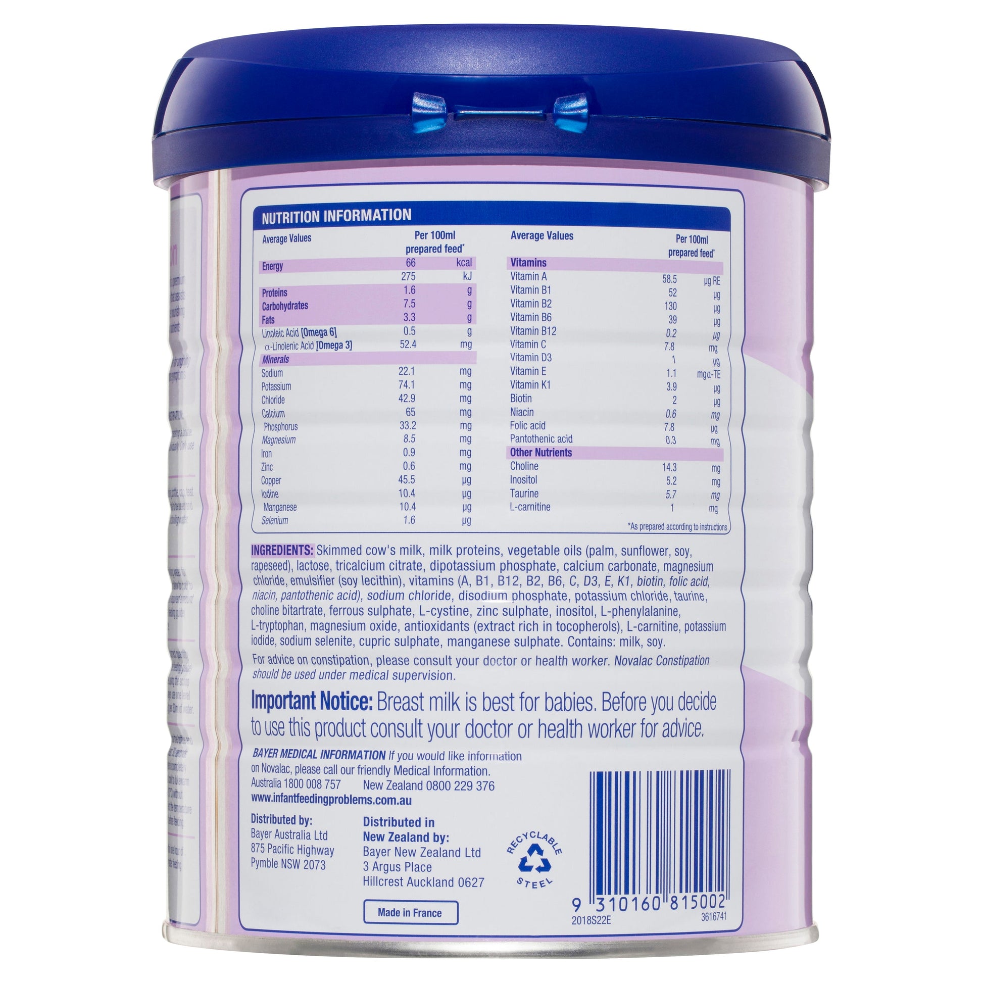 Suitable for babies from birth to 12 months of age. Novalac Constipation is nutritionally complete and suitable for ongoing everyday use after your baby's constipation symptoms have resolved. Babies aged over 6 months should be offered solid food in addition to infant formula.